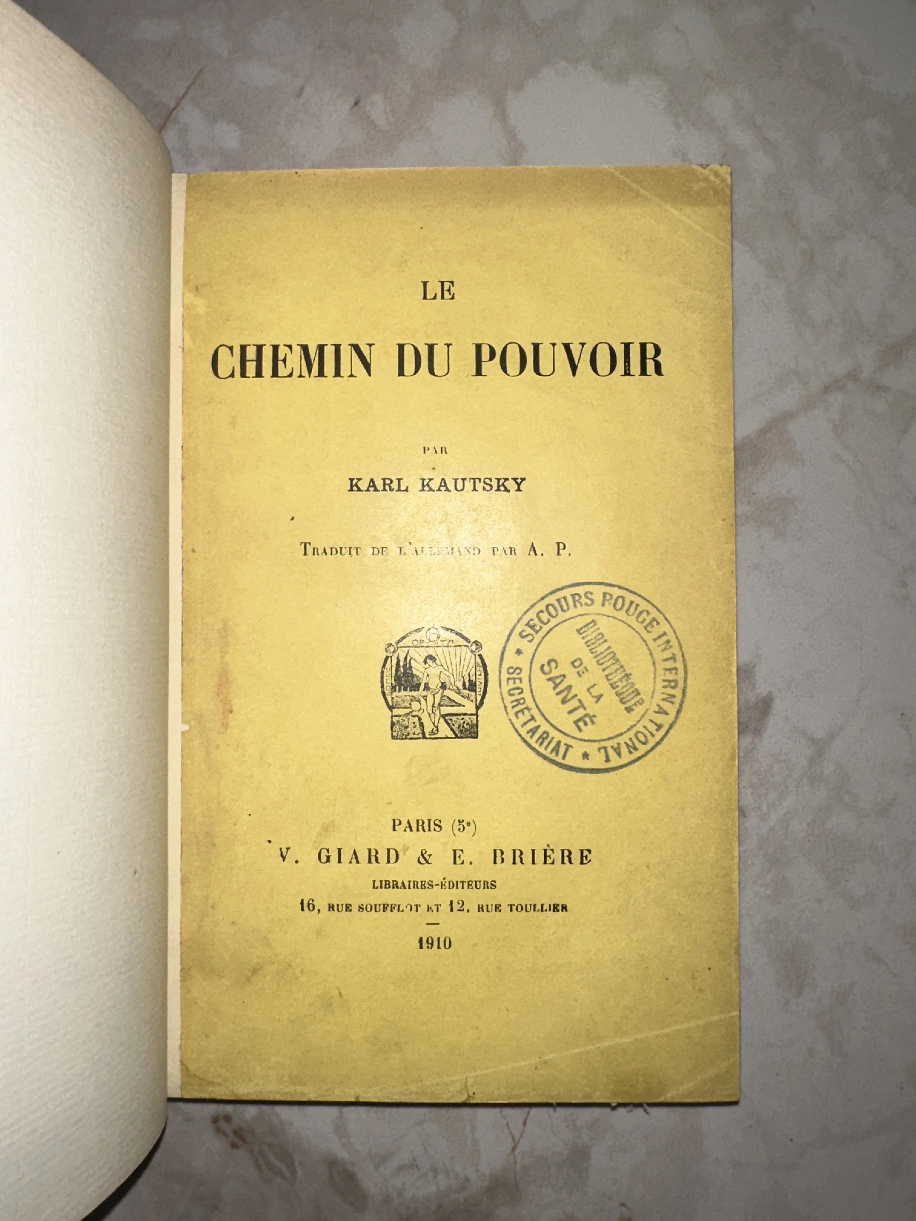 Редкое парижское издание фундаментального труда Карла Каутского, выпущенное издательством Giard & Brière в 1910 году. Экземпляр обладает уникальным провенансом, о чем свидетельствует штамп библиотеки Международной организации помощи борцам революции (Secours Rouge International), придающий книге особую коллекционную и историческую ценность.