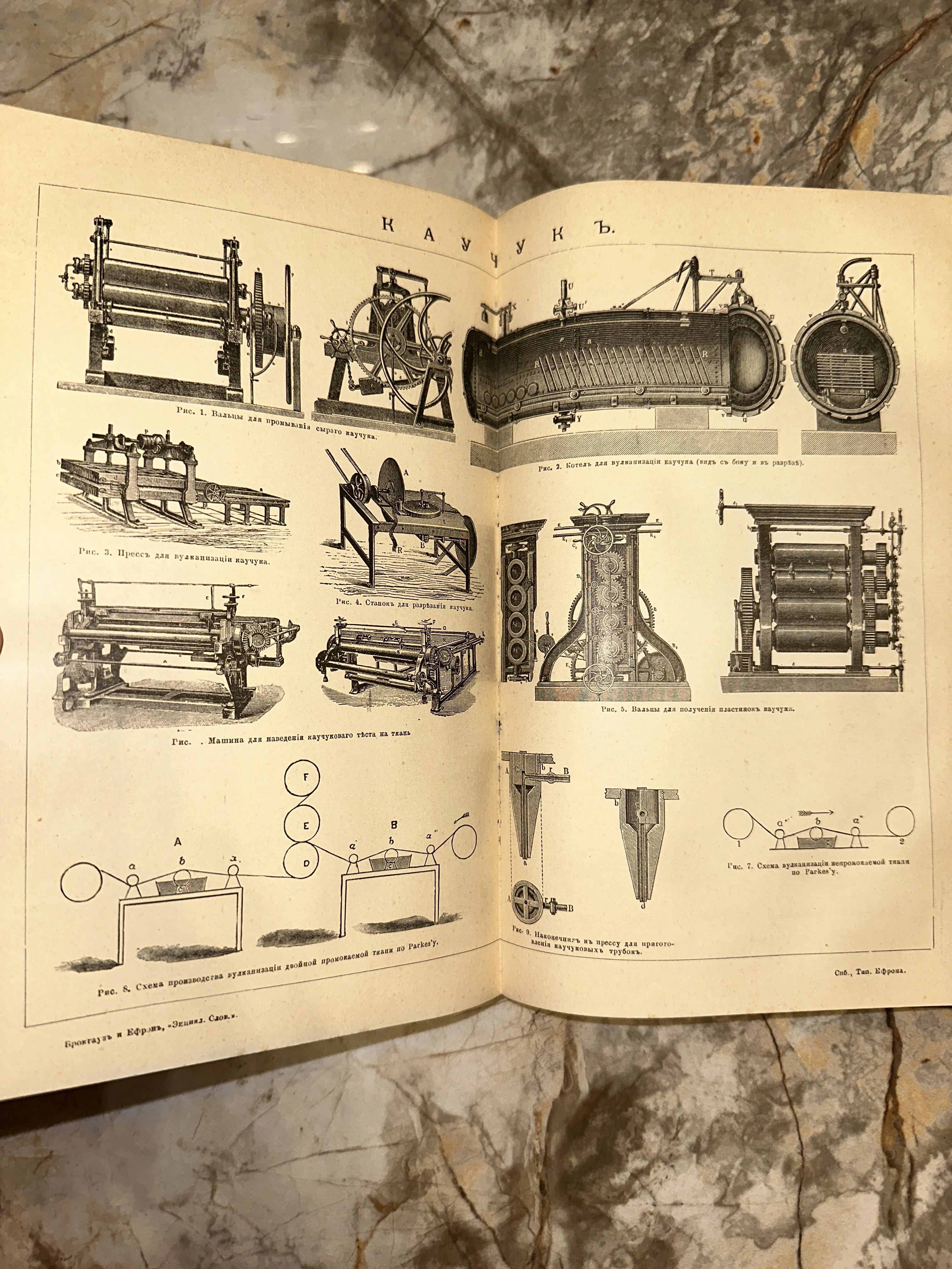 Гравюры к статье «Каучукъ» из энциклопедического словаря Брокгауза и Ефрона