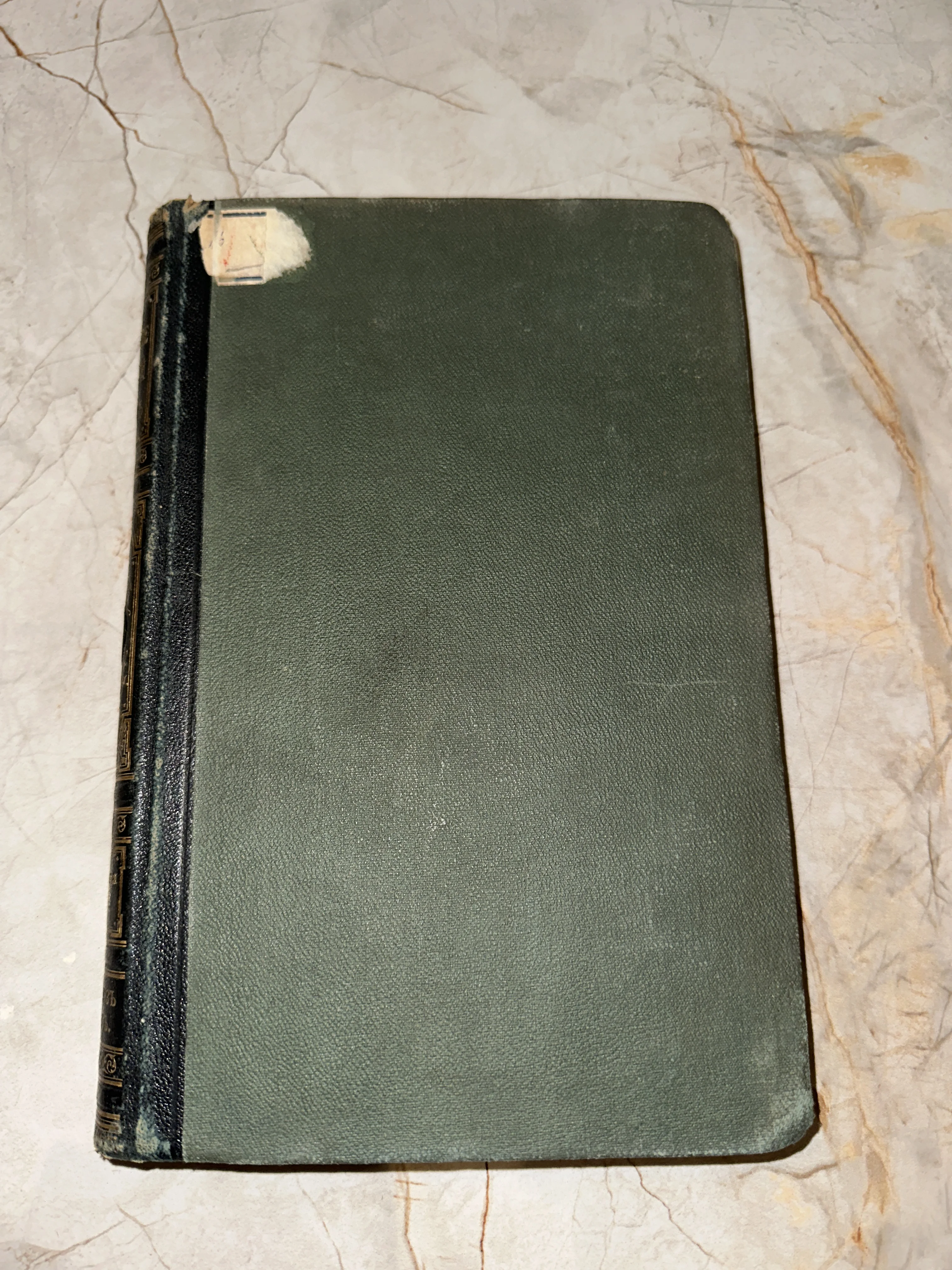 Изящный антикварный фолиант, сохранивший благородную патину времени на своем составном переплете. Потертый золоченый корешок и текстурированная зеленая ткань обложки создают неповторимую атмосферу старой библиотеки. Этот экземпляр станет ценным дополнением к коллекции редких изданий или стильным акцентом в интерьере.
