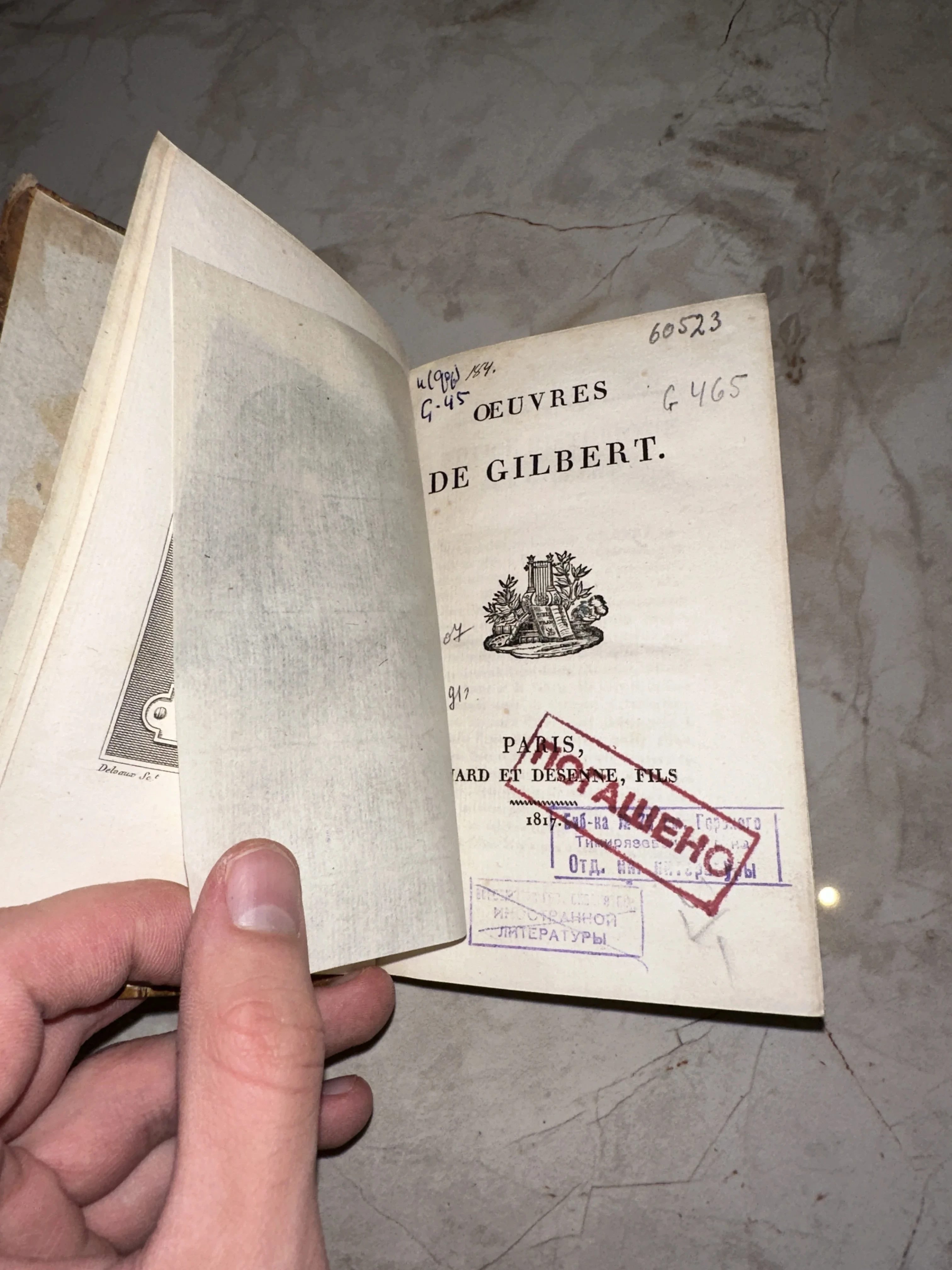 Элегантное парижское издание начала XIX века, сохранившее очарование эпохи Просвещения. Особую историческую значимость экземпляру придают подлинные библиотечные штампы и рукописные инвентарные номера, превращающие книгу в уникальный объект с богатым провенансом.