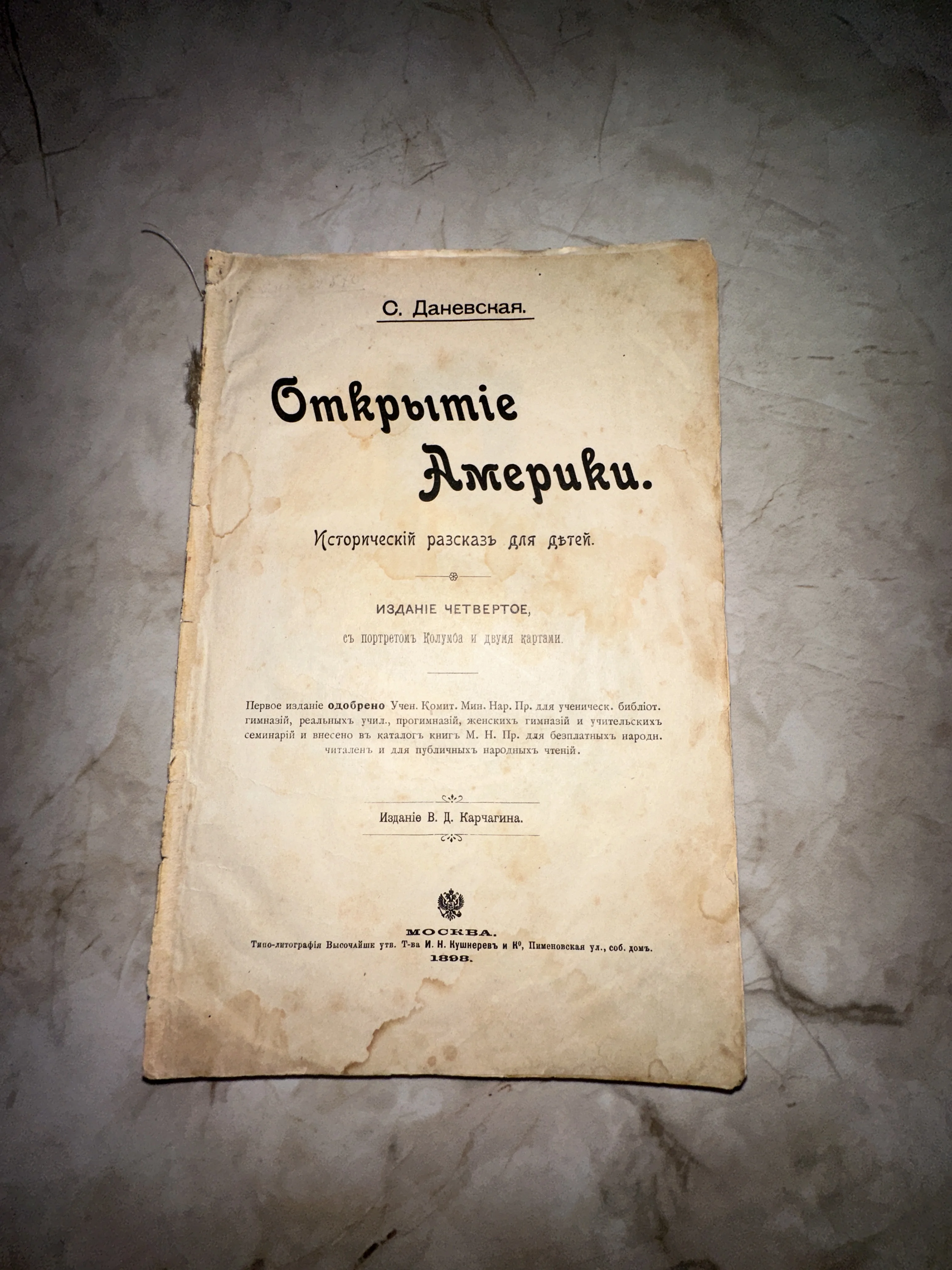 Редкое дореволюционное издание, созданное специально для юных читателей конца XIX века, открывает захватывающий мир великих географических открытий. Страницы с характерной патиной времени и благородными следами бытования подчеркивают подлинность и историческую ценность этого антикварного экземпляра. Книга представляет собой прекрасный образец образовательной литературы Российской империи и станет жемчужиной любой тематической библиотеки.