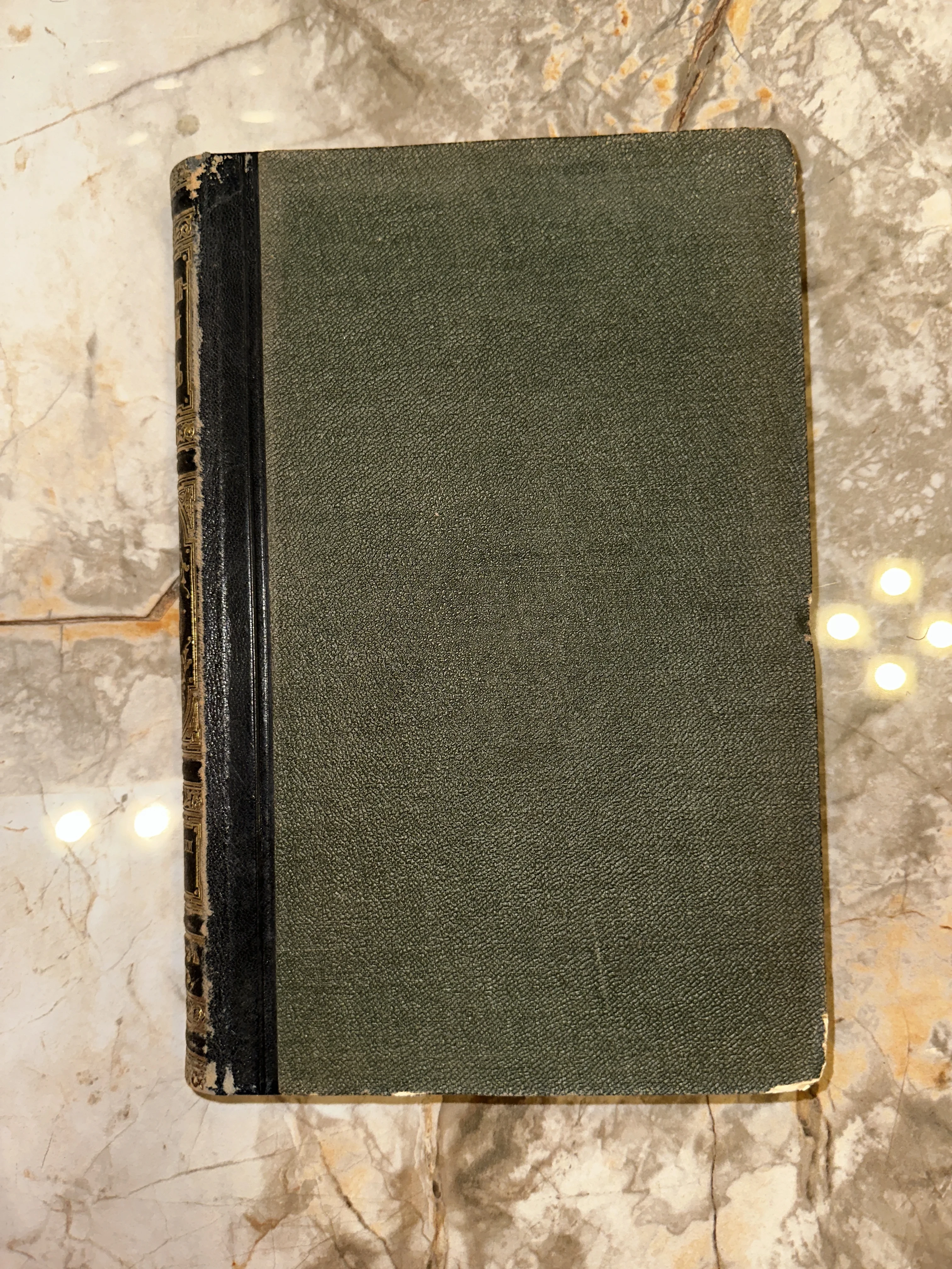 Изысканный образец книжного дела прошлых столетий с характерным составным переплетом и благородной патиной времени. Корешок украшен деликатным золотым тиснением, а фактурная поверхность крышек передает неповторимые тактильные ощущения антикварного тома. Идеальный экземпляр для ценителей истории и классической эстетики в домашней библиотеке.