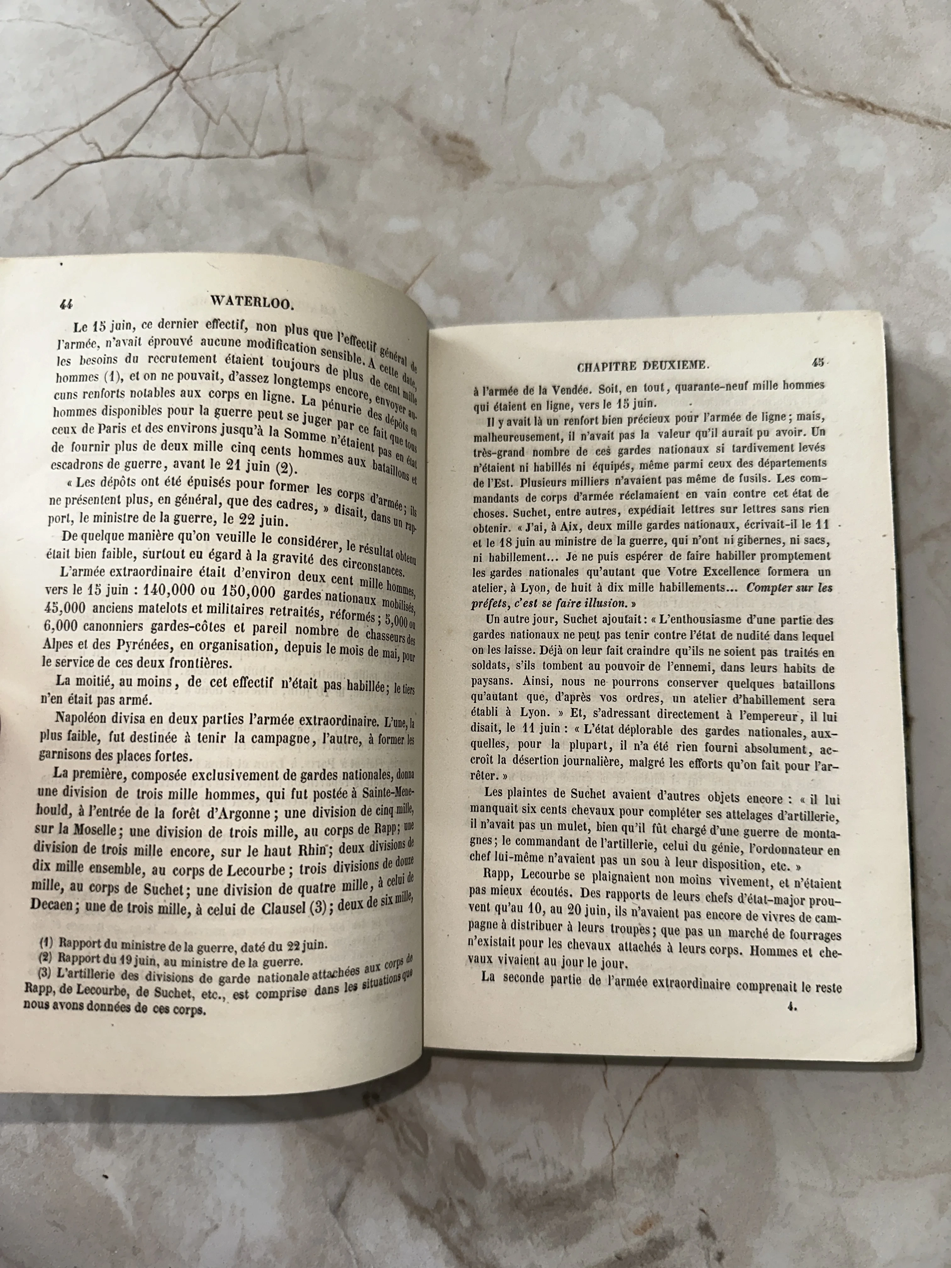 Этот уникальный разворот старинной книги погружает в детальное описание эпохи Наполеоновских войн. Плотная бумага с характерной патиной времени и классическая верстка XIX века подчеркивают историческую значимость издания. Идеальный предмет для коллекции военной истории или украшения классического интерьера.