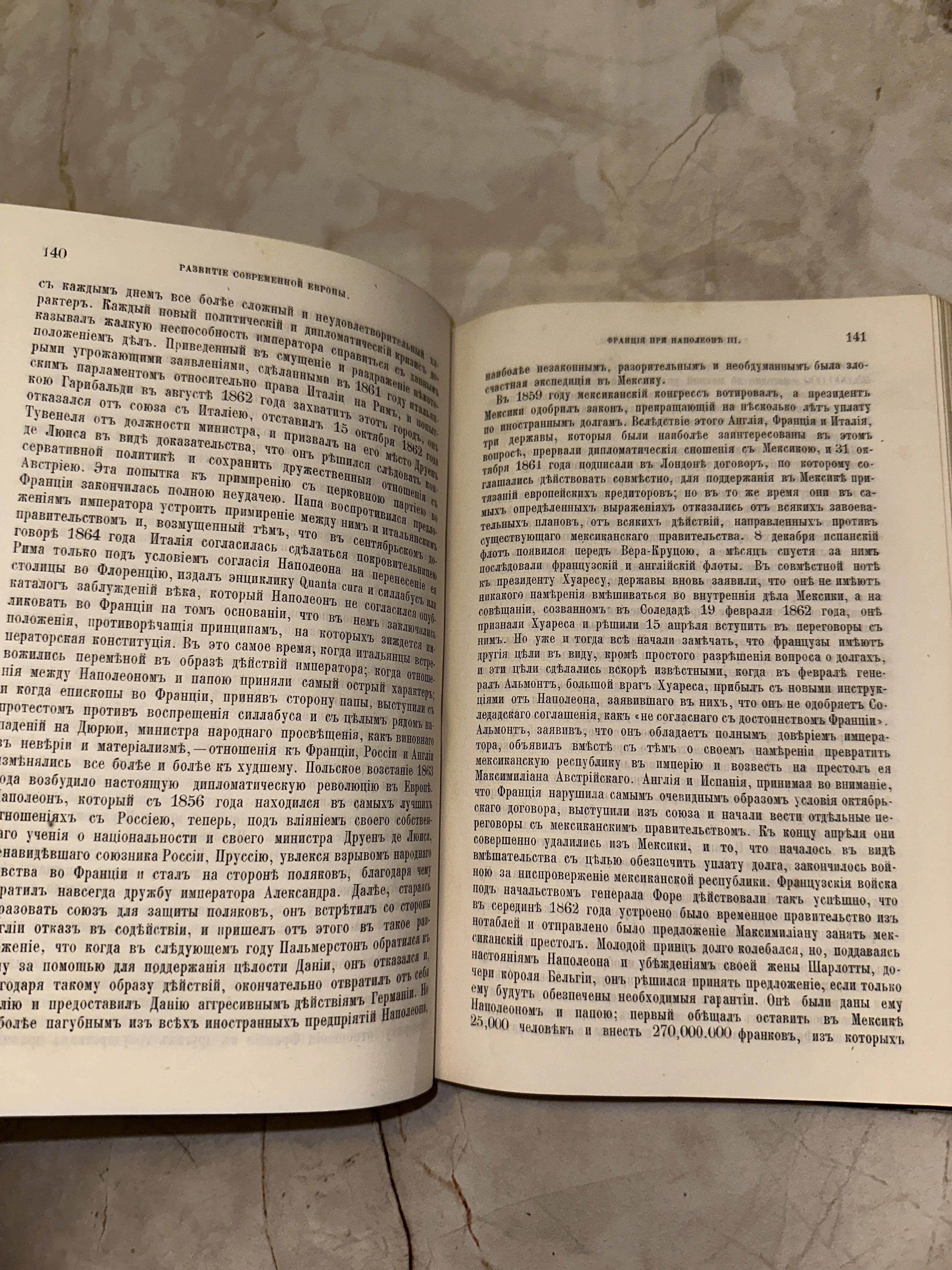 Разворот антикварной книги с текстом на дореволюционном русском языке о Франции при Наполеоне III.