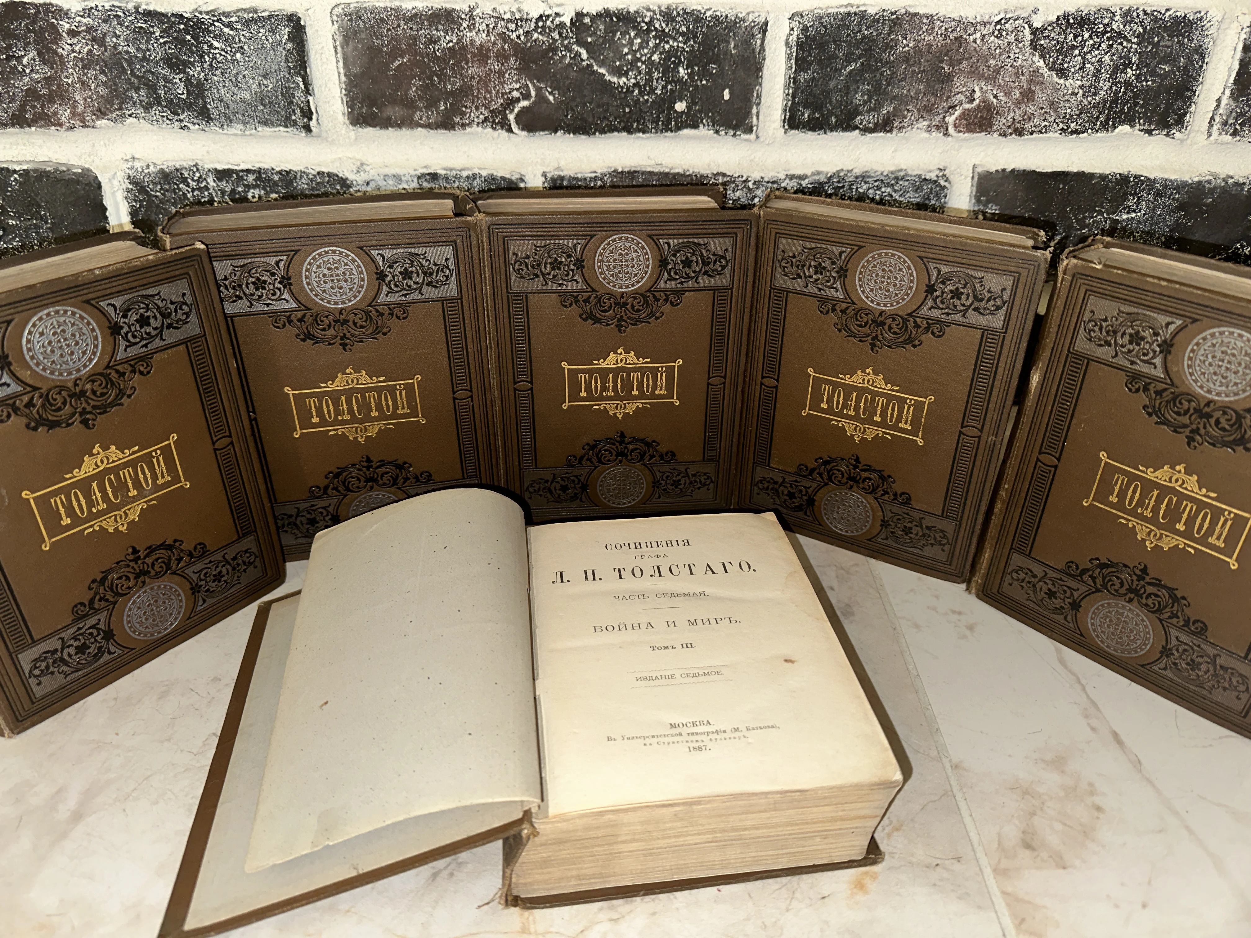 Уникальное прижизненное издание великого классика, отпечатанное в Университетской типографии в Москве. Книги сохранили изысканные коленкоровые переплеты с богатым декоративным тиснением и благородную патину времени на страницах. Этот комплект представляет не только литературную, но и высокую коллекционную ценность, являясь образцом книжного искусства конца XIX века.