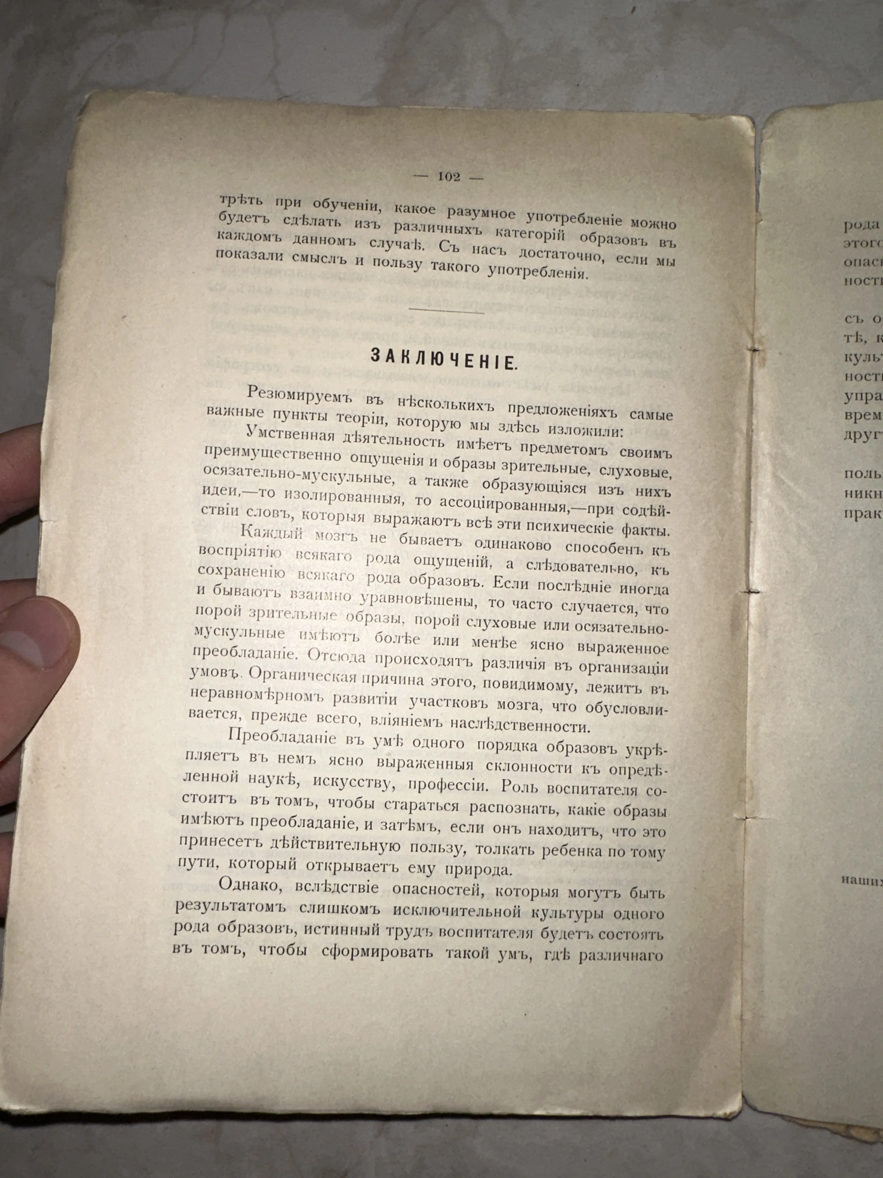 Перед вами уникальный фрагмент дореволюционного научного труда, посвященного вопросам психологии и педагогики. Плотная бумага с благородной патиной времени и классическая дореформенная орфография создают неповторимое ощущение соприкосновения с историей развития научной мысли. Текст сохранил отличную читаемость, представляя как коллекционную, так и историческую ценность.