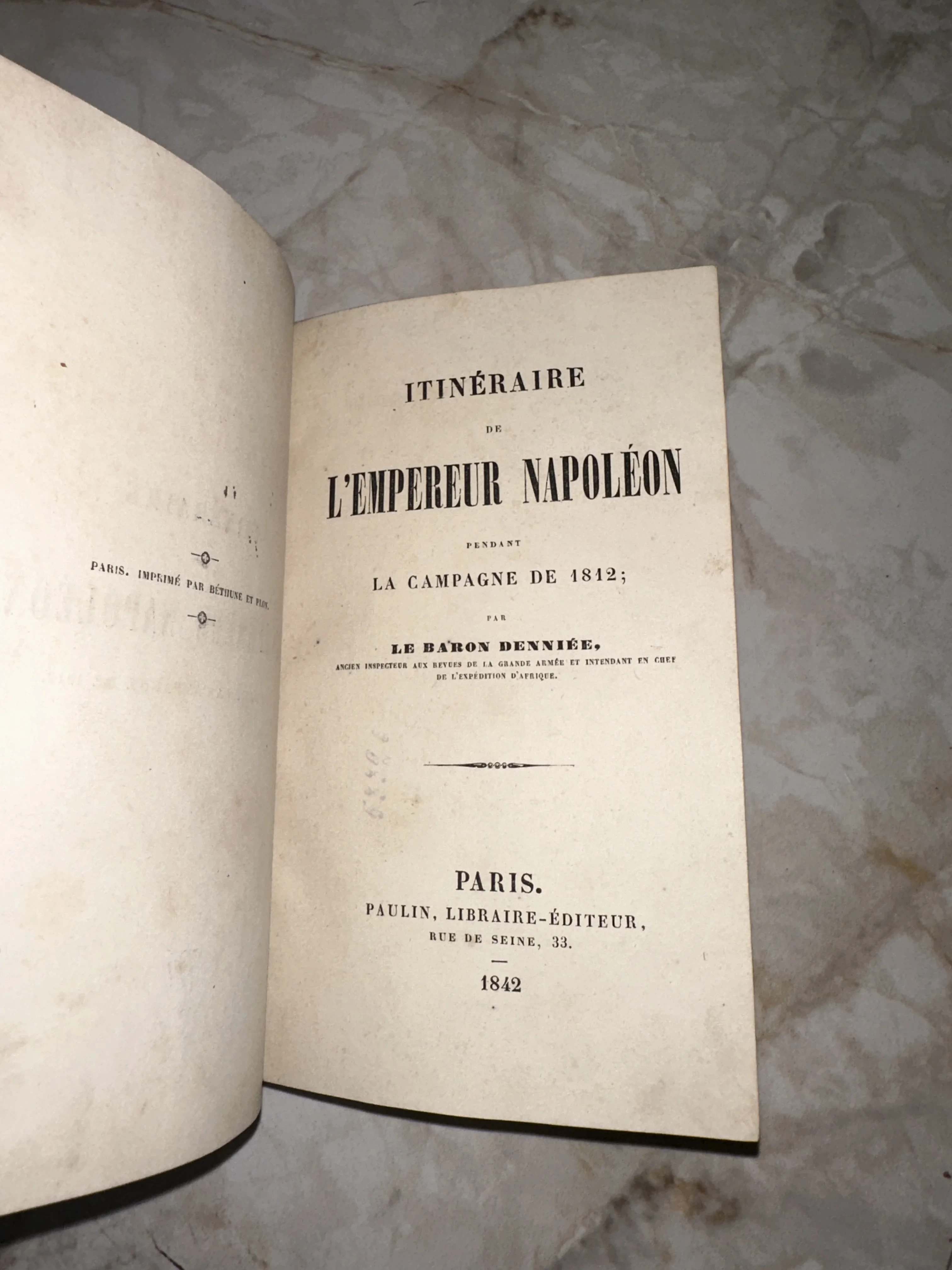 Перед вами подлинное парижское издание середины XIX века, повествующее о детальном маршруте Наполеона Бонапарта в ходе судьбоносной кампании 1812 года. Книга сохранила очарование старины: пожелтевшие от времени страницы с легким крапом патины передают атмосферу великой исторической эпохи и подчеркивают коллекционную ценность экземпляра.