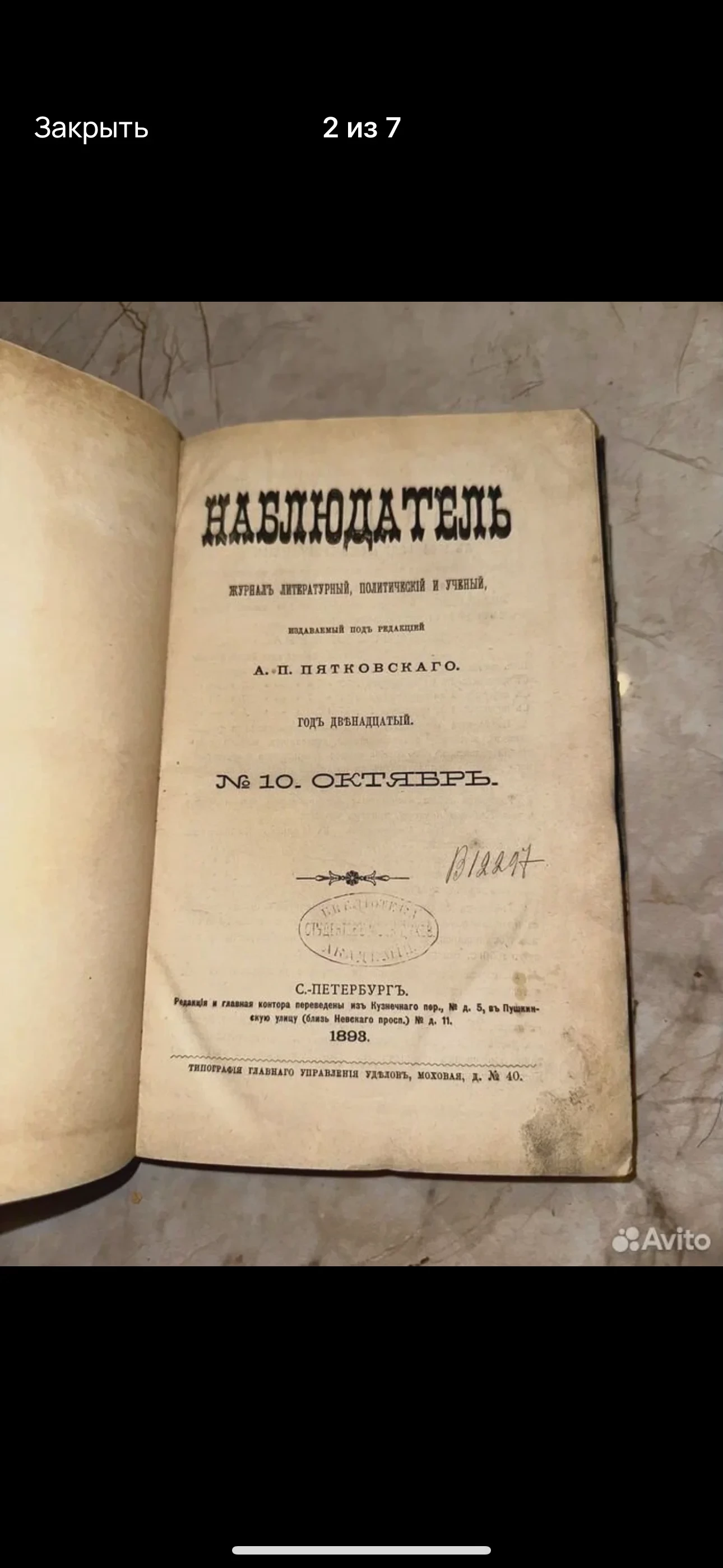 Перед вами подлинный образец русской периодики конца XIX века — литературный и политический журнал под редакцией А. П. Пятковского. Издание сохранило очарование эпохи: благородную патину на бумаге, четкую дореволюционную типографику и уникальный библиотечный штамп, подтверждающий его исторический путь. Идеальный экспонат для частной коллекции, погружающий в интеллектуальную атмосферу старого Санкт-Петербурга.