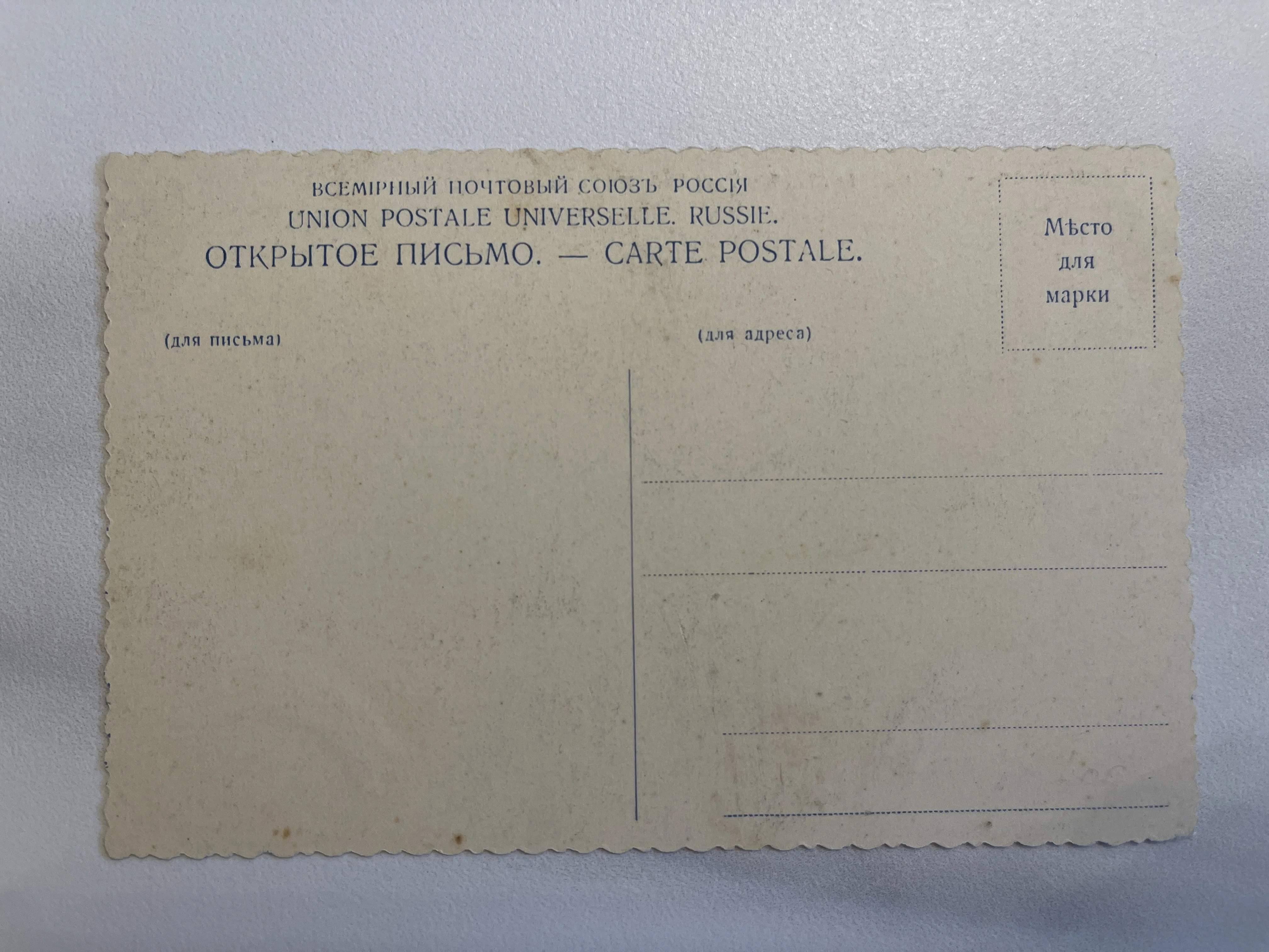 Элегантное открытое письмо начала XX века с характерными фестончатыми краями и аутентичными надписями Всемирного почтового союза. Плотная бумага с благородной патиной времени и чистые поля для адреса передают неповторимую атмосферу ушедшей эпохи, представляя особую ценность для коллекционеров-филокартистов.