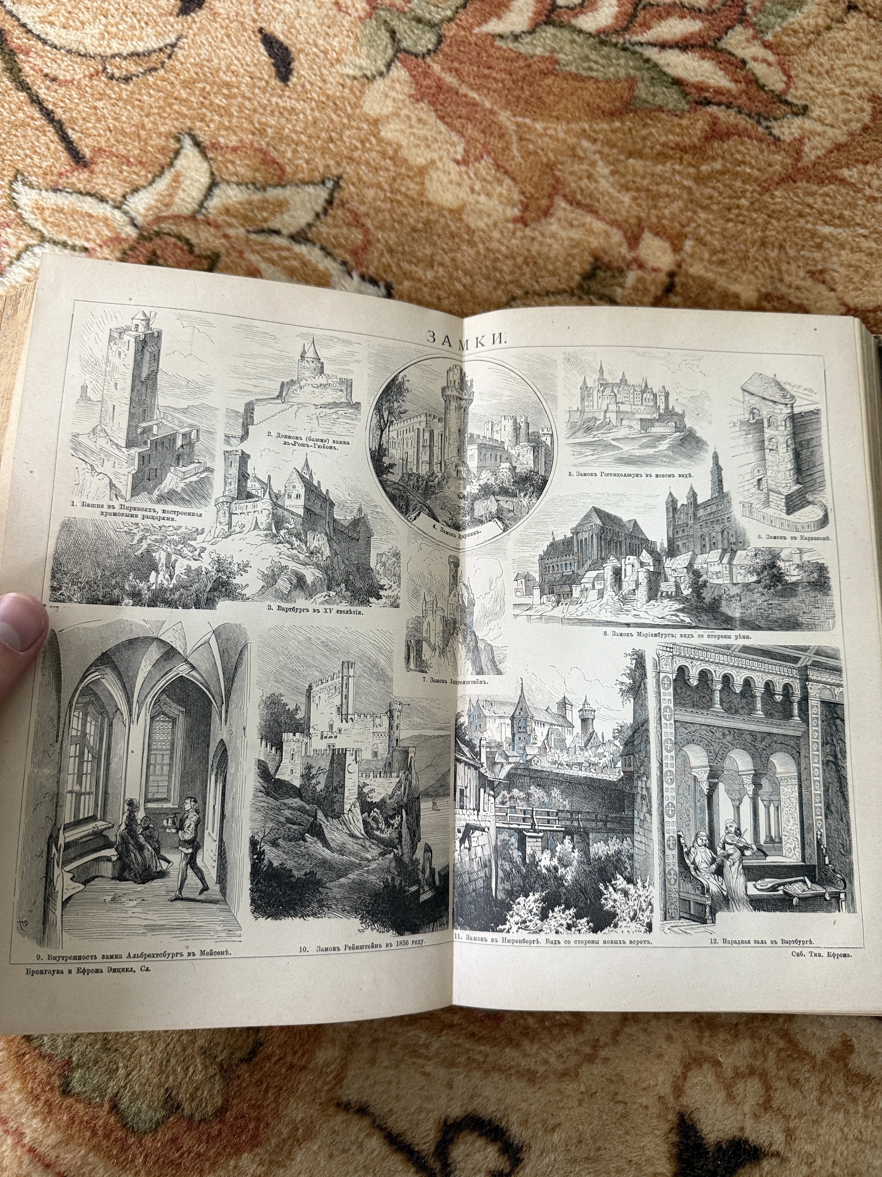 Антикварная гравюра «Замки» из словаря Брокгауза и Ефрона
