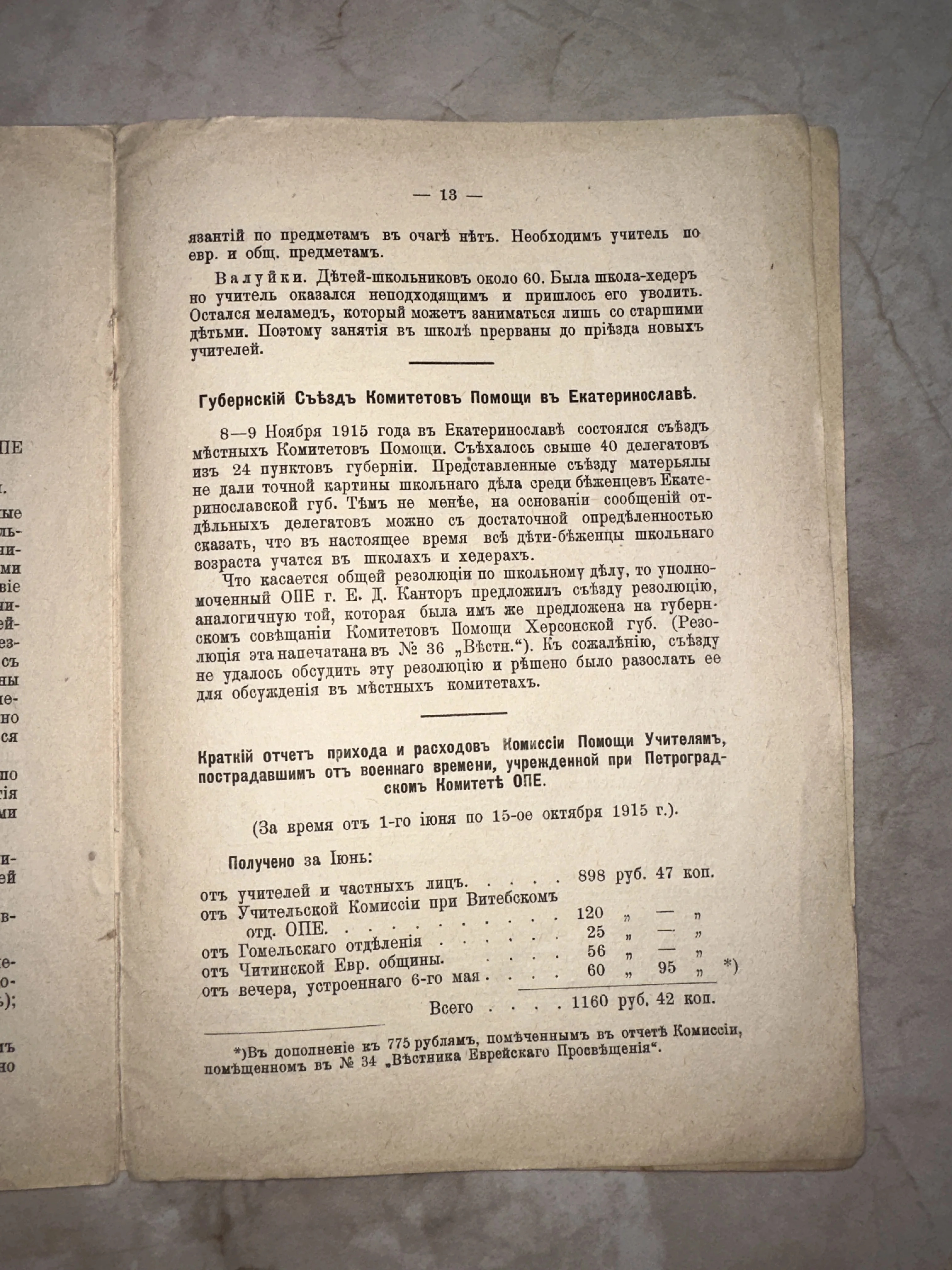 Страница отчета Комитета помощи учителям, 1915 год