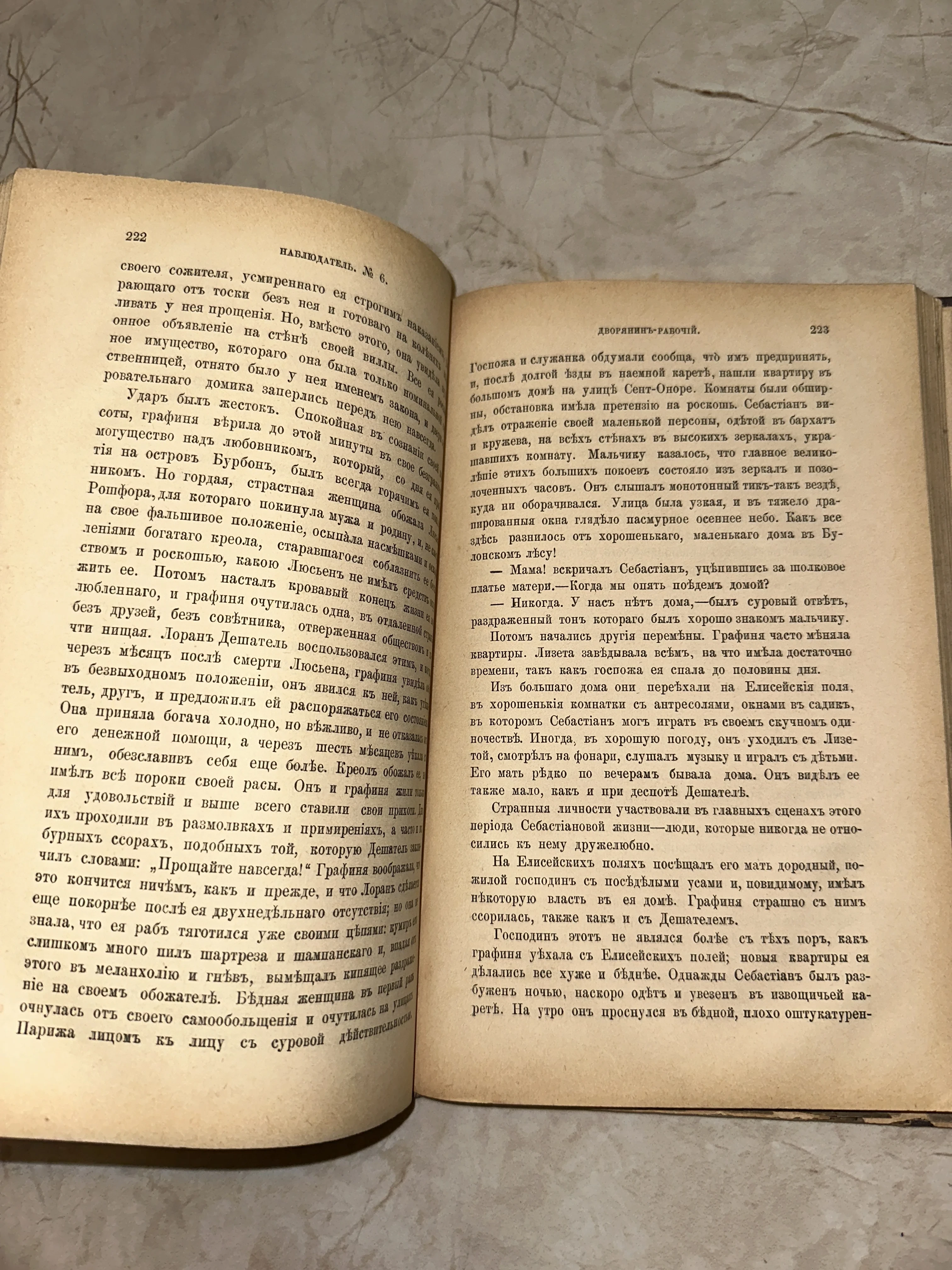 Перед вами подлинный фрагмент истории — страницы литературного журнала «Наблюдатель» конца XIX века. Характерная дореволюционная орфография и благородная патина времени на бумаге создают неповторимую атмосферу старинной библиотеки. Идеальный предмет для ценителей русской словесности и коллекционеров антикварной периодики.