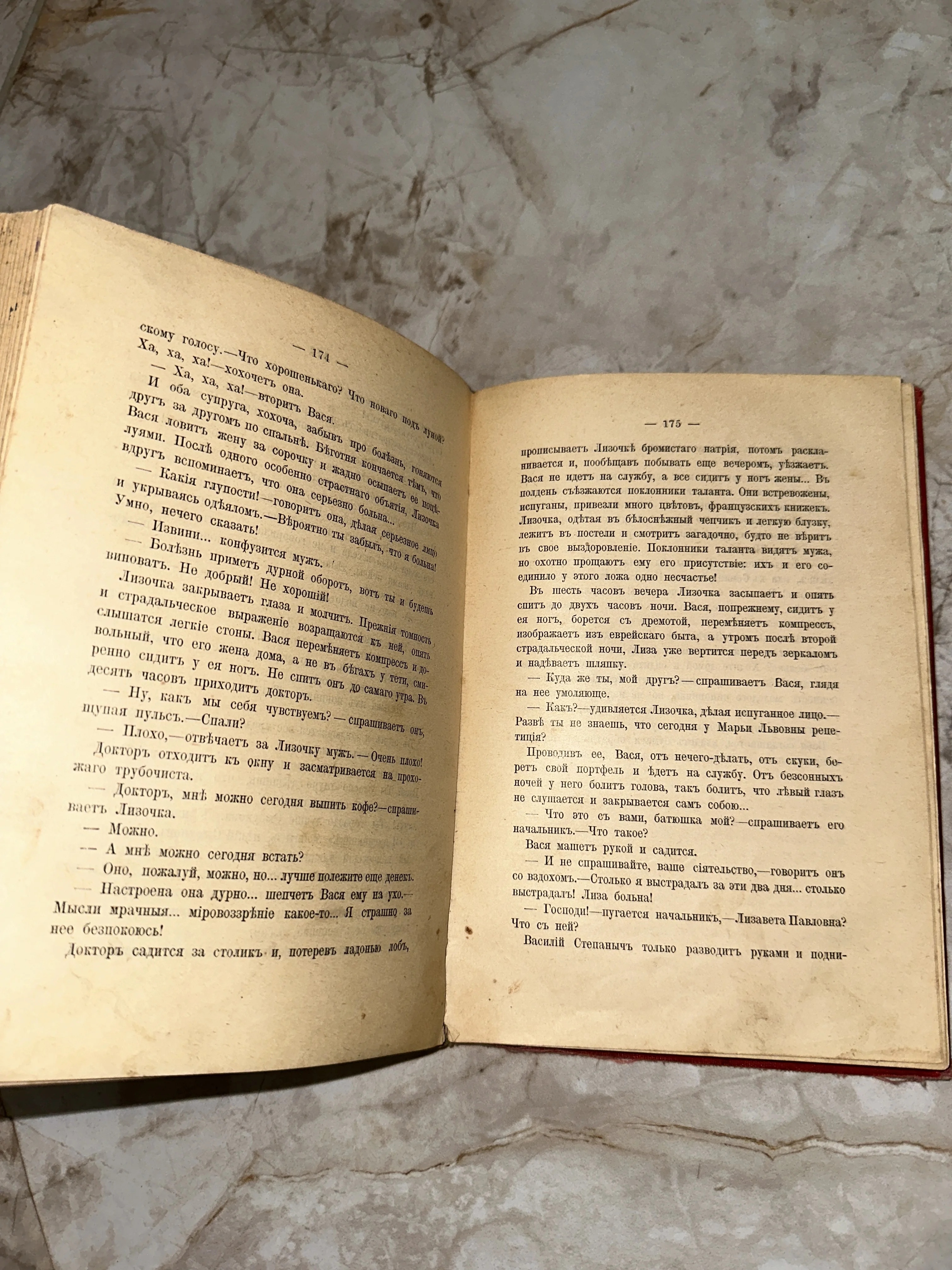 Этот книжный разворот переносит в атмосферу дореволюционной России, сохраняя очарование старого слога с характерными «ятями» и «ерами». Пожелтевшая от времени бумага с легкой фактурой и четкий типографский шрифт подчеркивают подлинность и коллекционную ценность издания. Идеальный образец печатного дела прошлого века, сохранивший дух своей эпохи.