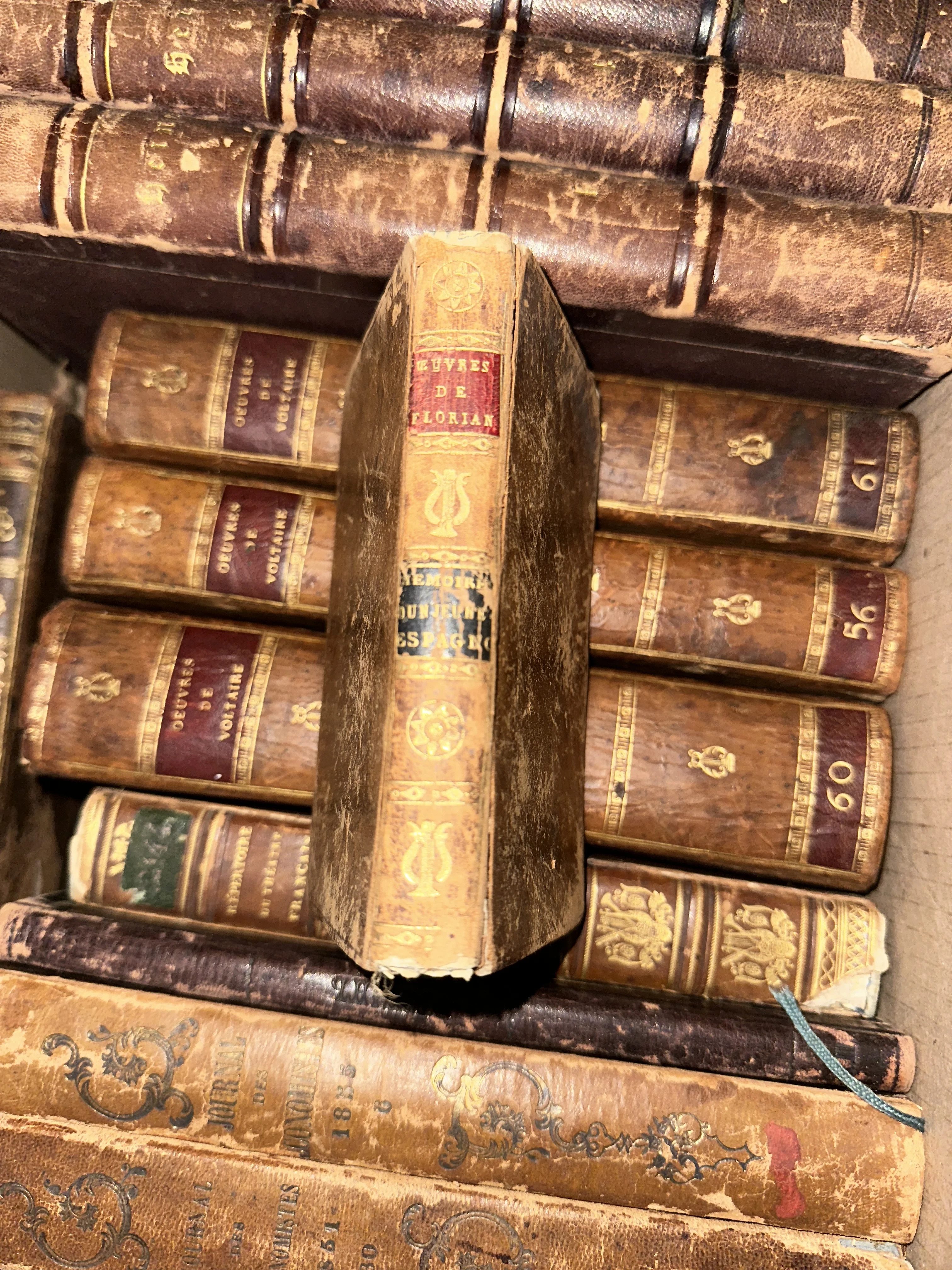 Собрание старинных французских книг в кожаных переплетах