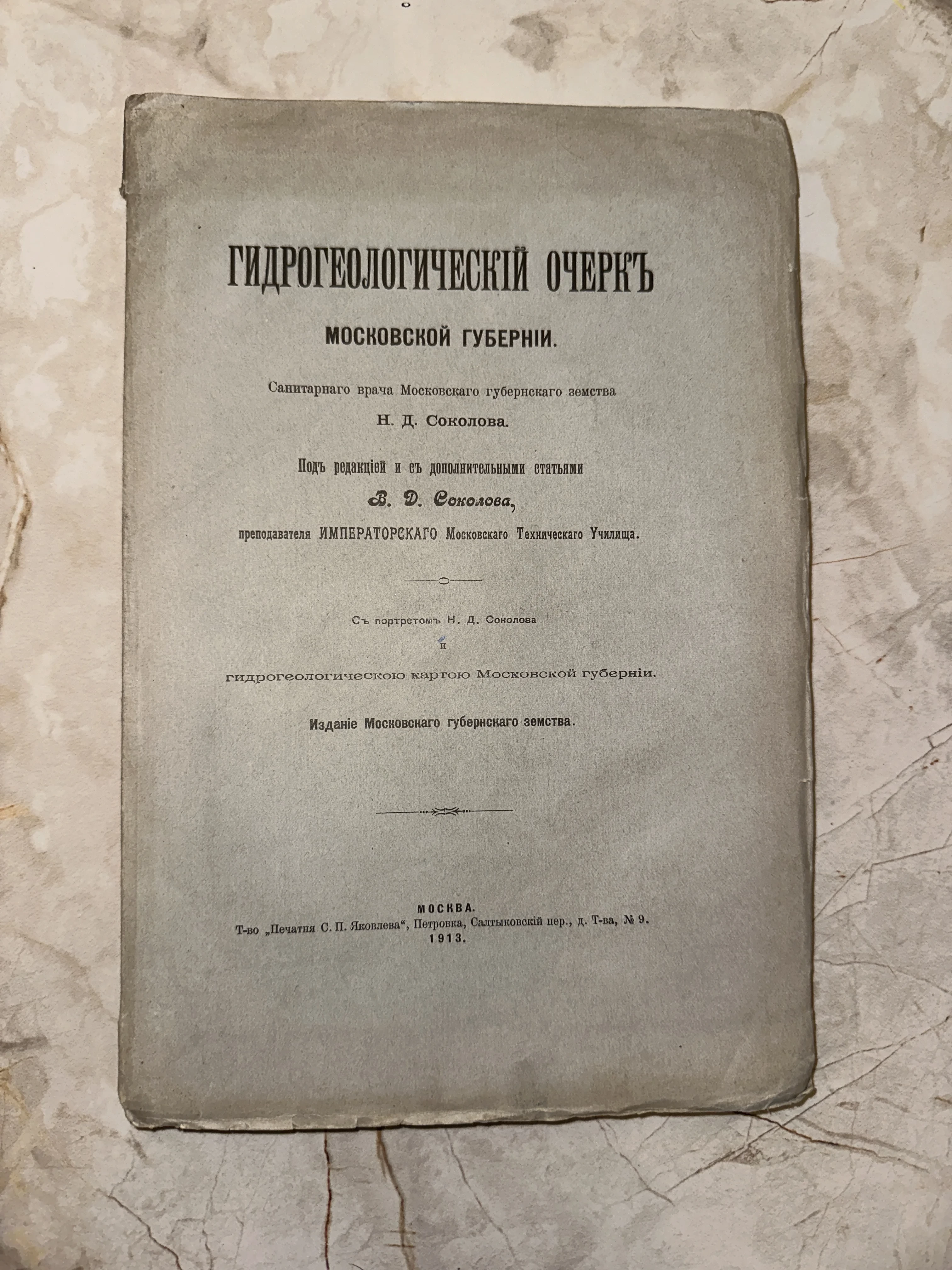 Редкое научное издание Московского губернского земства, представляющее собой фундаментальный труд по гидрогеологии начала XX века. Книга сохранила оригинальную бумажную обложку с дореволюционной орфографией и четким типографским шрифтом, являясь ценным артефактом для коллекционеров и исследователей истории науки.