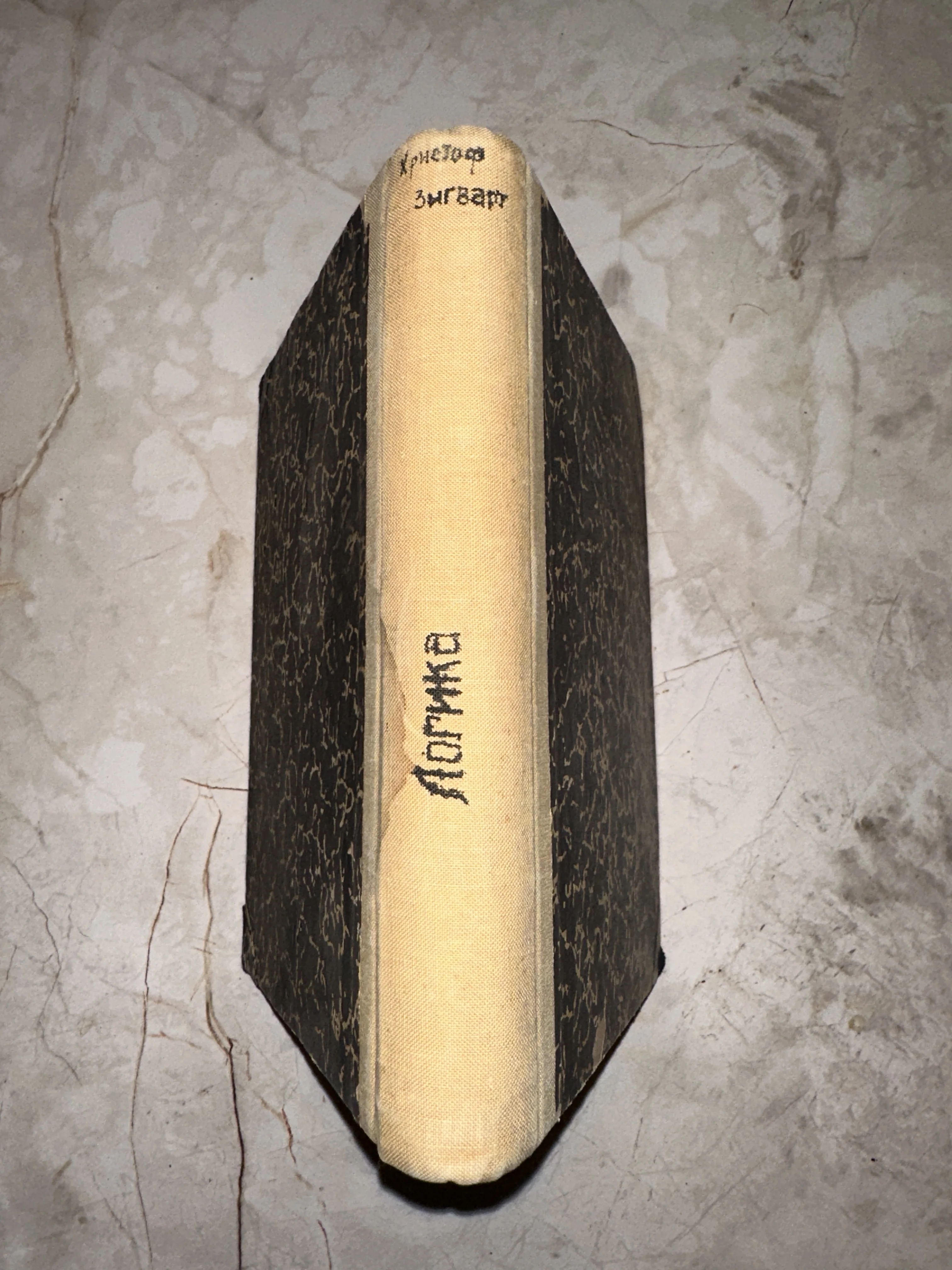 Перед вами фундаментальный труд немецкого философа Христофа Зигварта в аутентичном полукожаном или тканевом переплете с характерным «мраморным» рисунком на крышках. Тканевый корешок с четким тиснением названия подчеркивает академическую ценность издания, а легкая патина времени добавляет предмету коллекционного шарма. Превосходный экземпляр для ценителей истории философии и классического книжного дела.