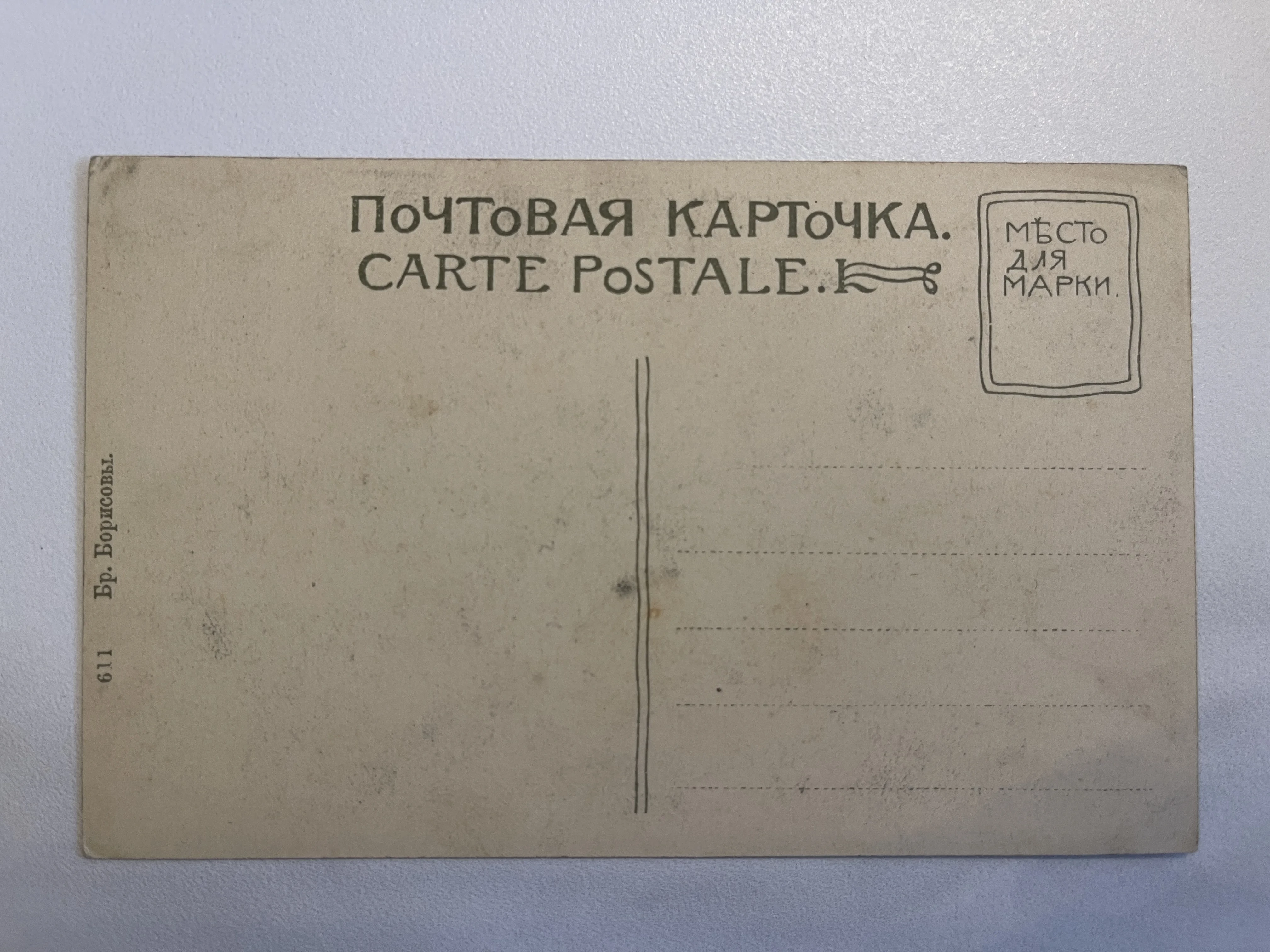 Чистый бланк открытого письма с благородными следами времени и аутентичной дореформенной орфографией. Издание известных братьев Борисовых представляет коллекционный интерес как образец типографского искусства Российской империи. Плотная пожелтевшая бумага сохранила дух эпохи, когда каждое письмо было особенным событием.