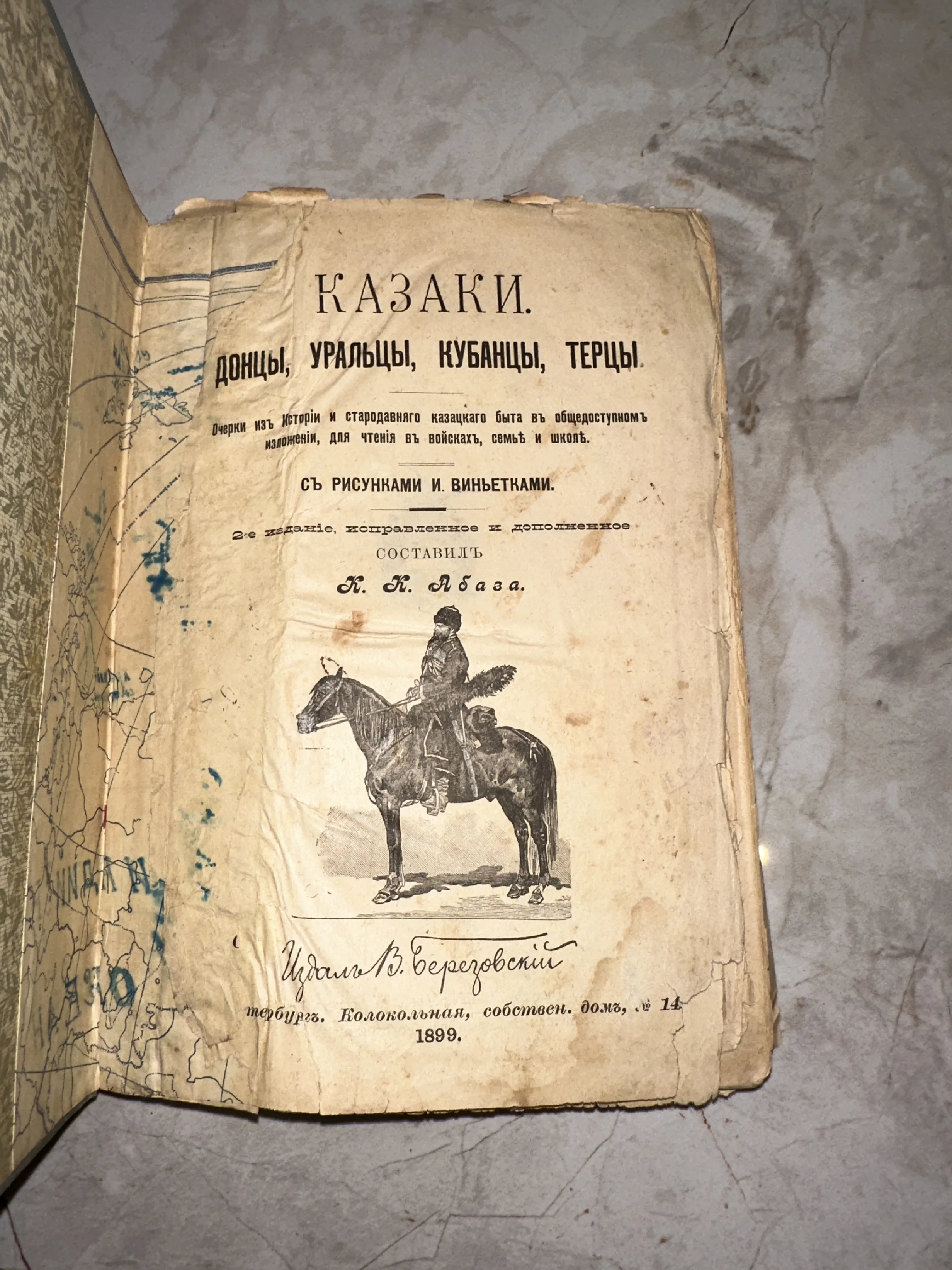 Редкое антикварное издание 1899 года, подробно описывающее быт и героическую историю казачьих войск. Страницы несут на себе благородный отпечаток времени: фактурная пожелтевшая бумага, редкие гравюры и сохранившаяся карта делают этот экземпляр живым свидетельством ушедшей эпохи. Книга представляет огромный интерес для коллекционеров военной истории и ценителей дореволюционной печати.