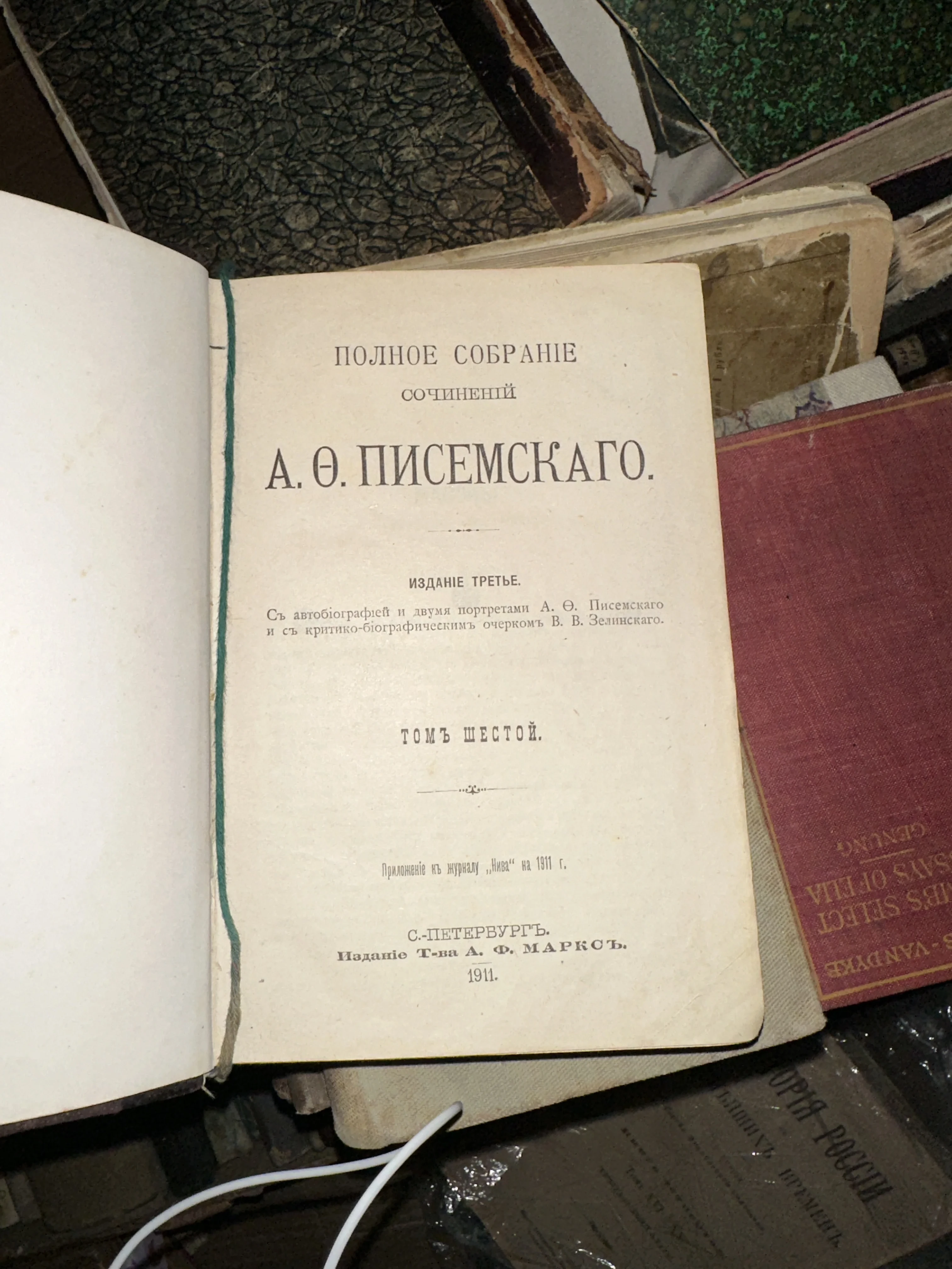Титульный лист антикварной книги А. Ф. Писемского 1911 года издания от товарищества А. Ф. Маркса.