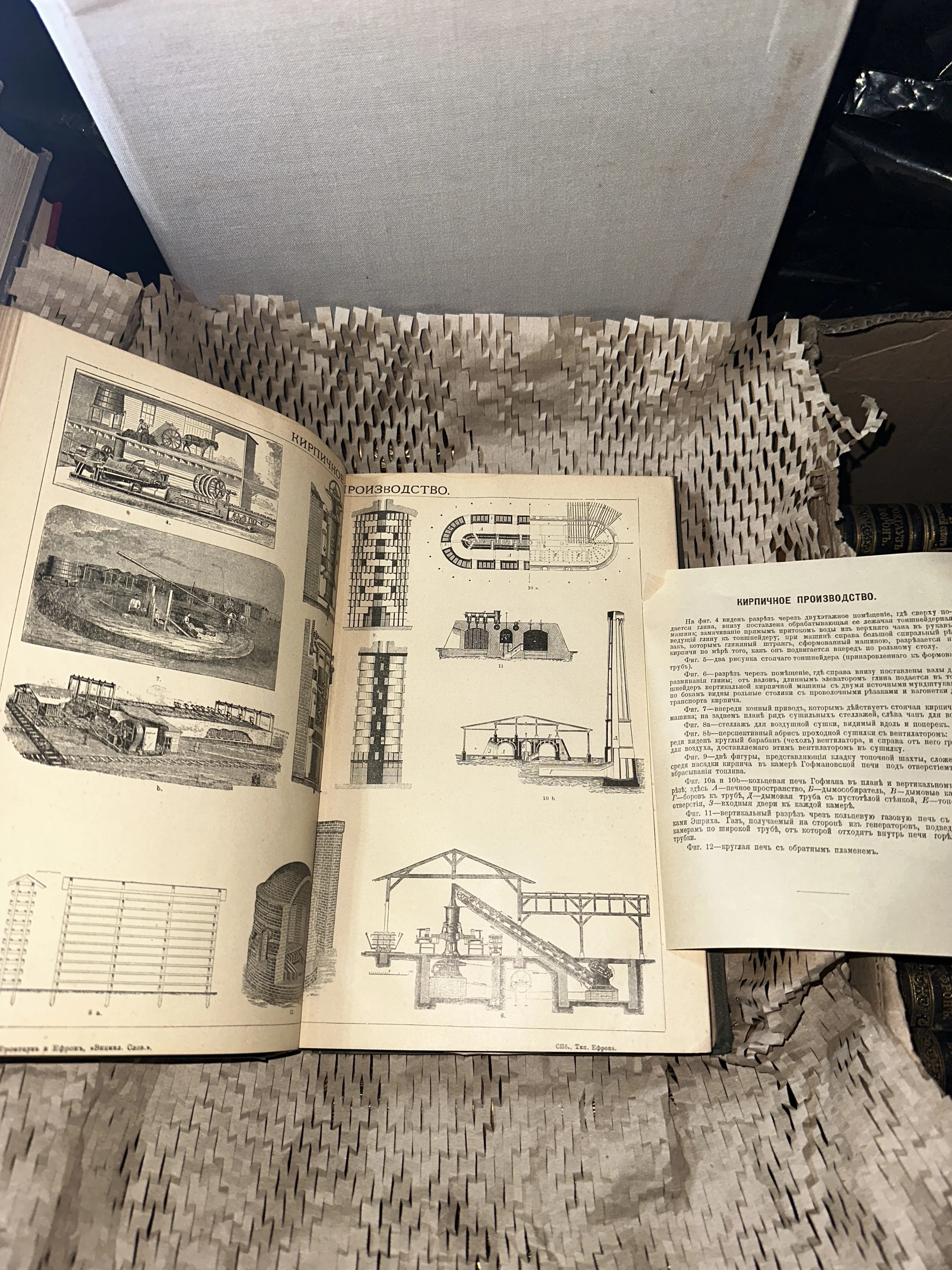Перед вами уникальный разворот из знаменитого энциклопедического словаря Брокгауза и Ефрона, посвященный индустриальным технологиям XIX века. Детальные штриховые гравюры демонстрируют устройство старинных печей и механизмов, сохраняя дух промышленной революции. Идеальный образец технической графики, сохранившийся в отличном состоянии для частной коллекции или оформления интерьера.