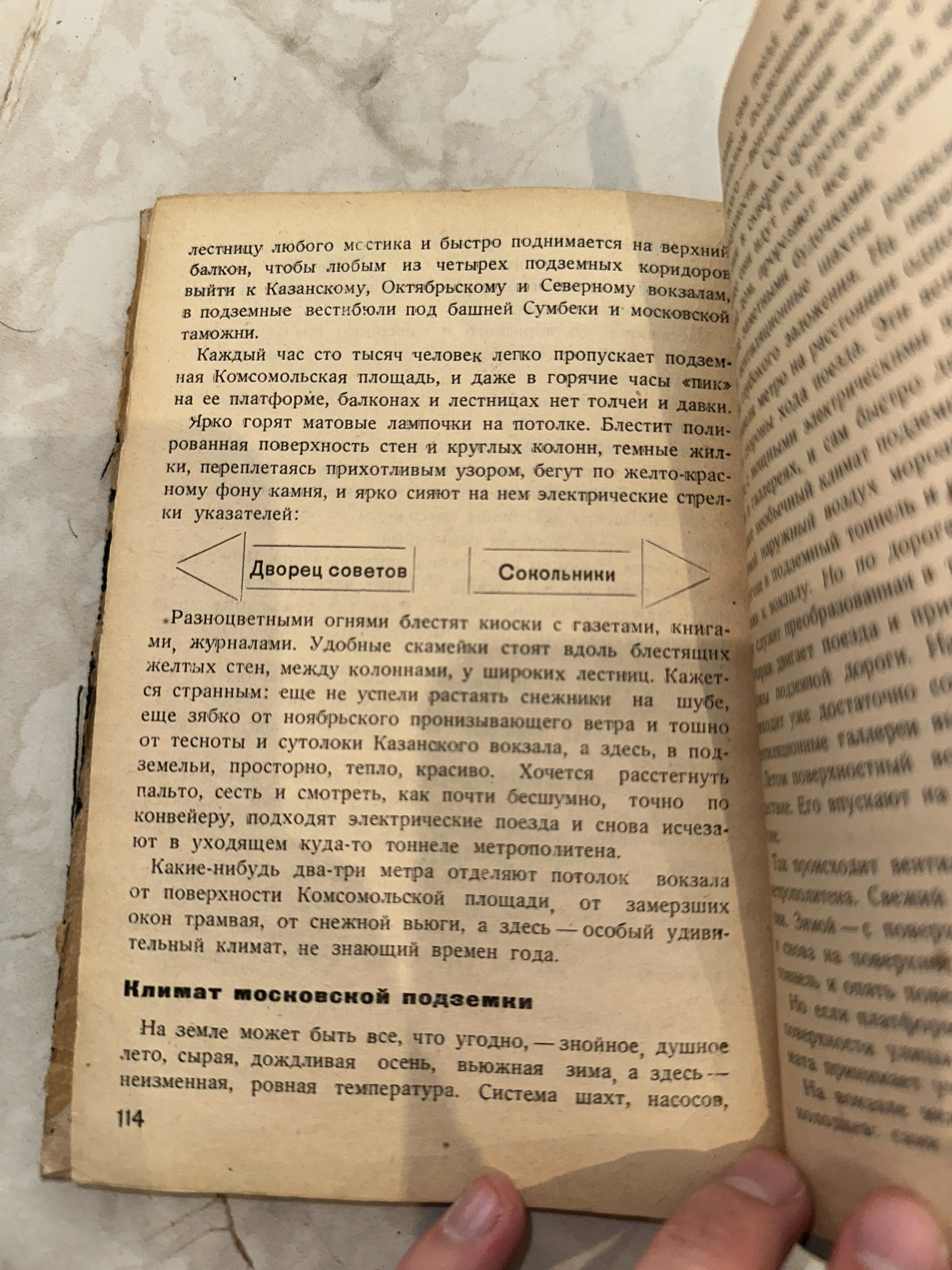 Уникальный документ эпохи, описывающий техническое и эстетическое совершенство раннего московского метрополитена. Пожелтевшие страницы и характерная советская верстка создают неповторимую атмосферу ретро-футуризма и гордости за архитектурные достижения СССР. Идеальный предмет для коллекции по истории транспорта или градостроительства Москвы.