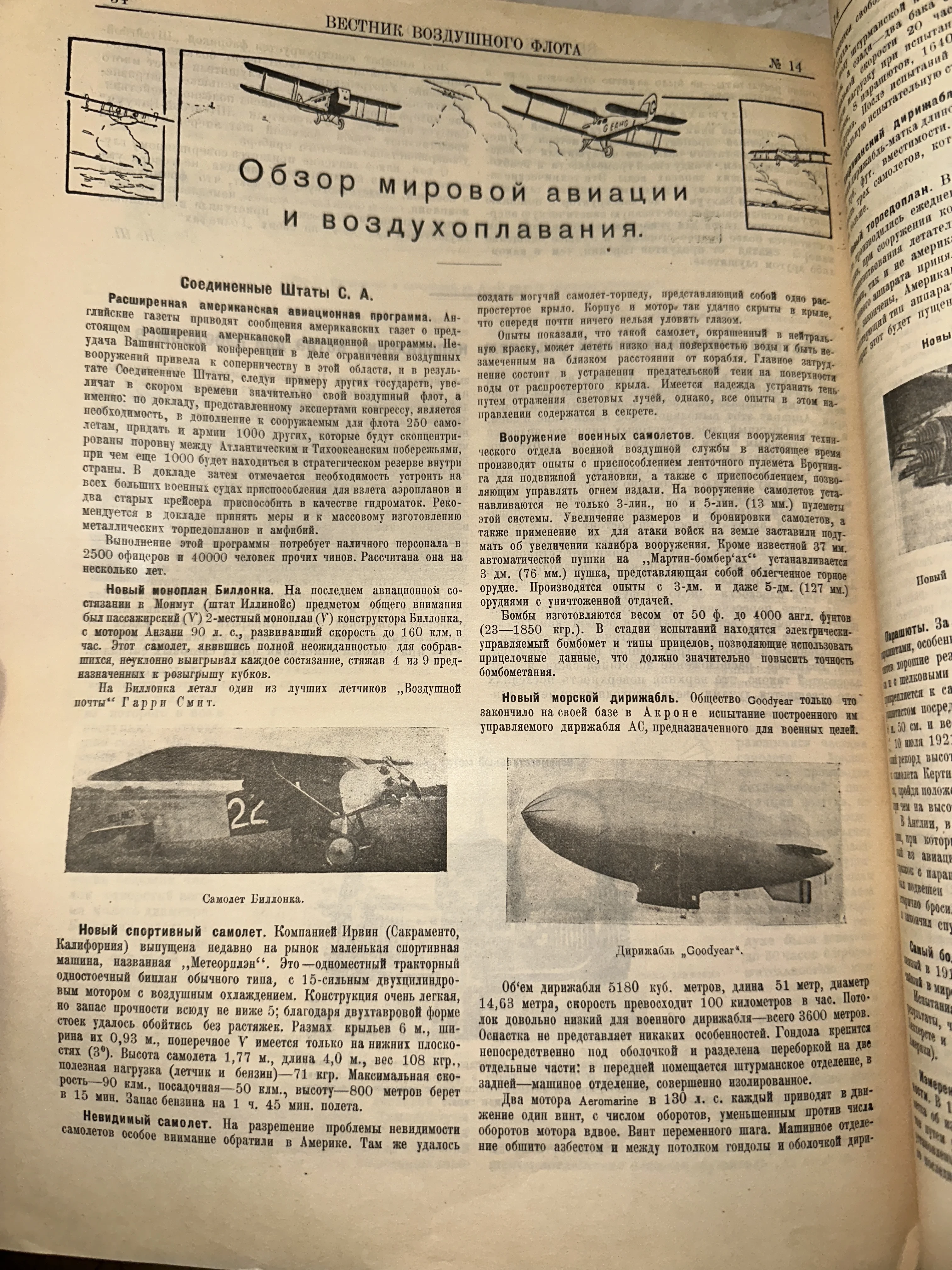 Страница журнала «Вестник Воздушного Флота», 1920-е годы