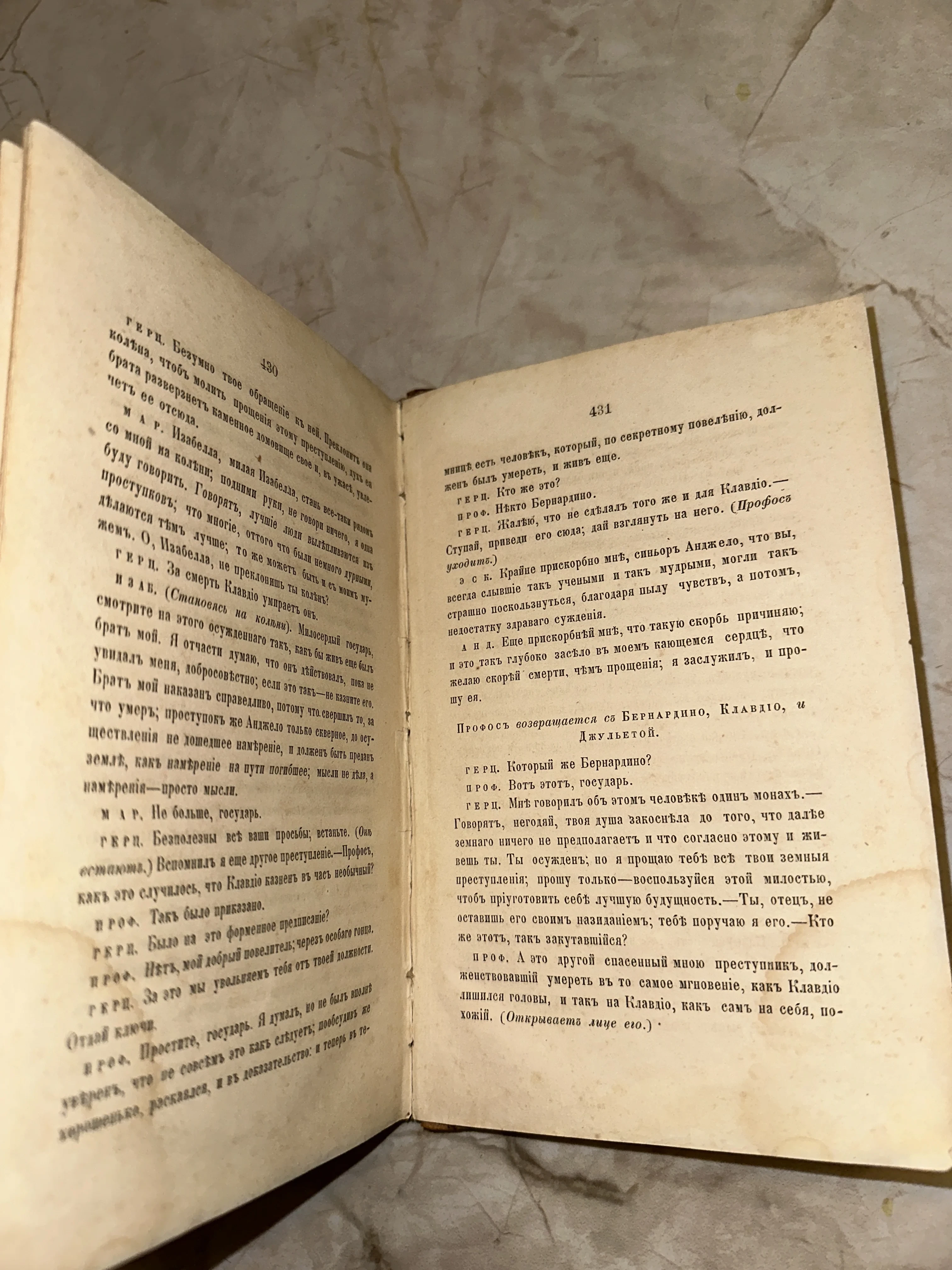 Разворот антикварного издания драматической пьесы