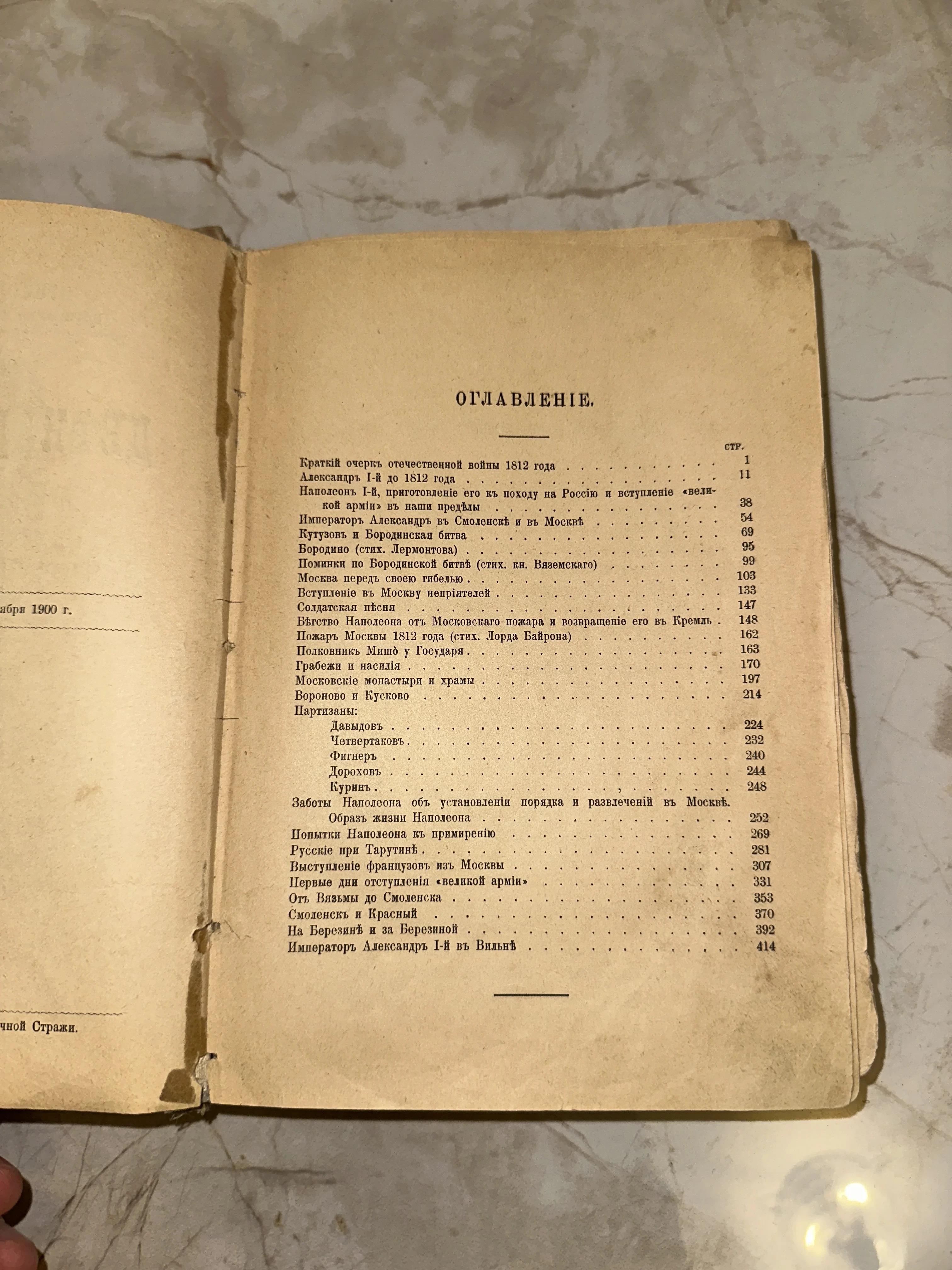 Оглавление антикварной книги об Отечественной войне 1812 года