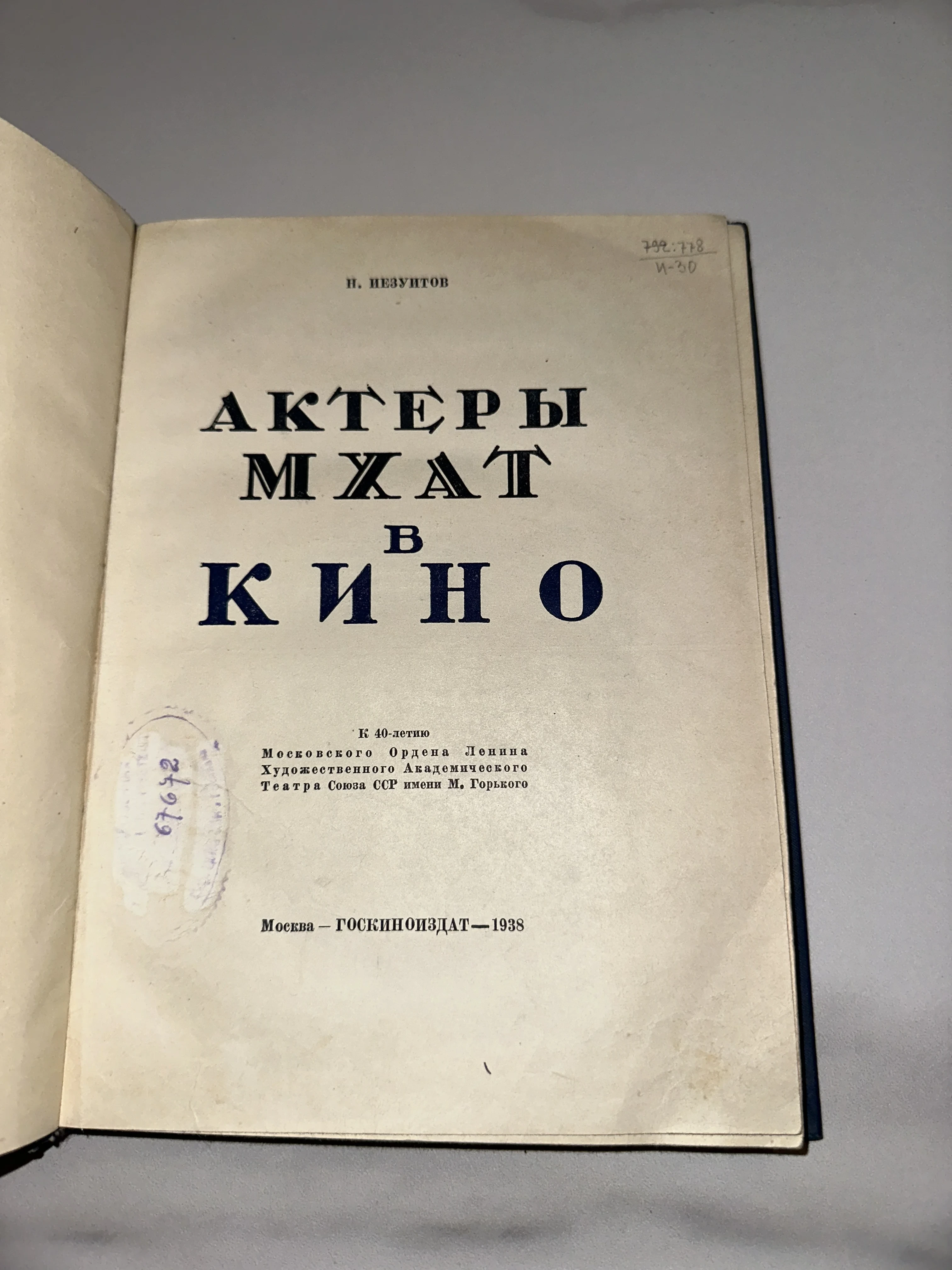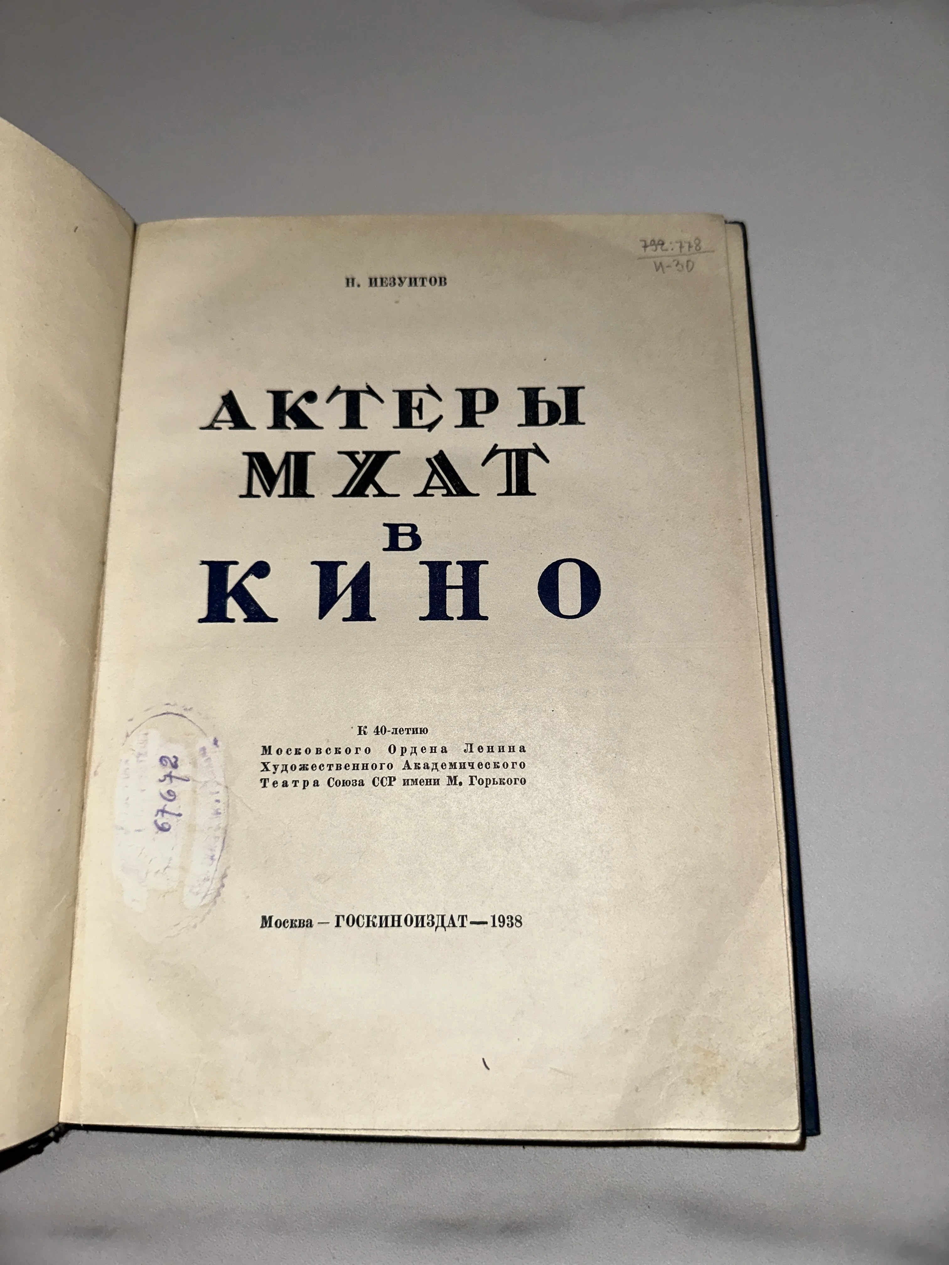 Книга Н. Иезуитова «Актеры МХАТ в кино», 1938 год