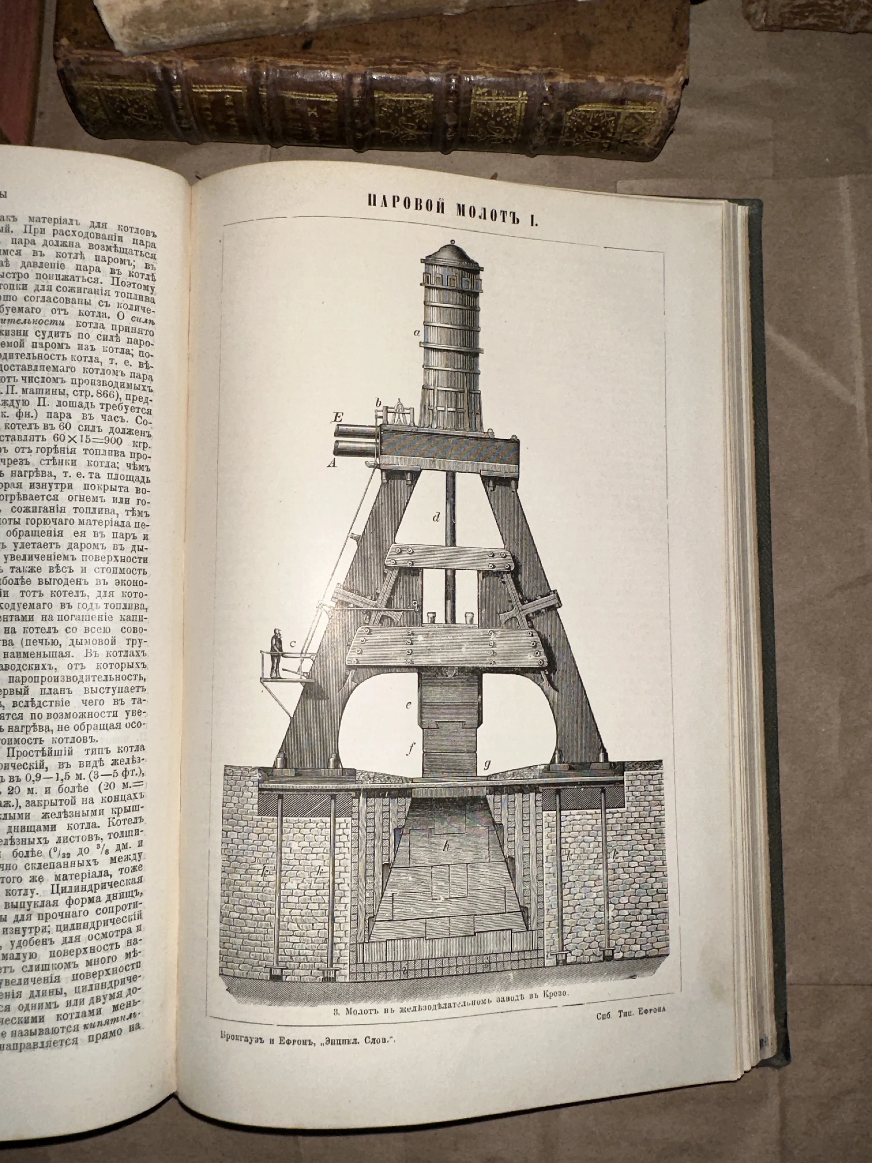Гравюра «Паровой молот» из энциклопедии Брокгауза и Ефрона