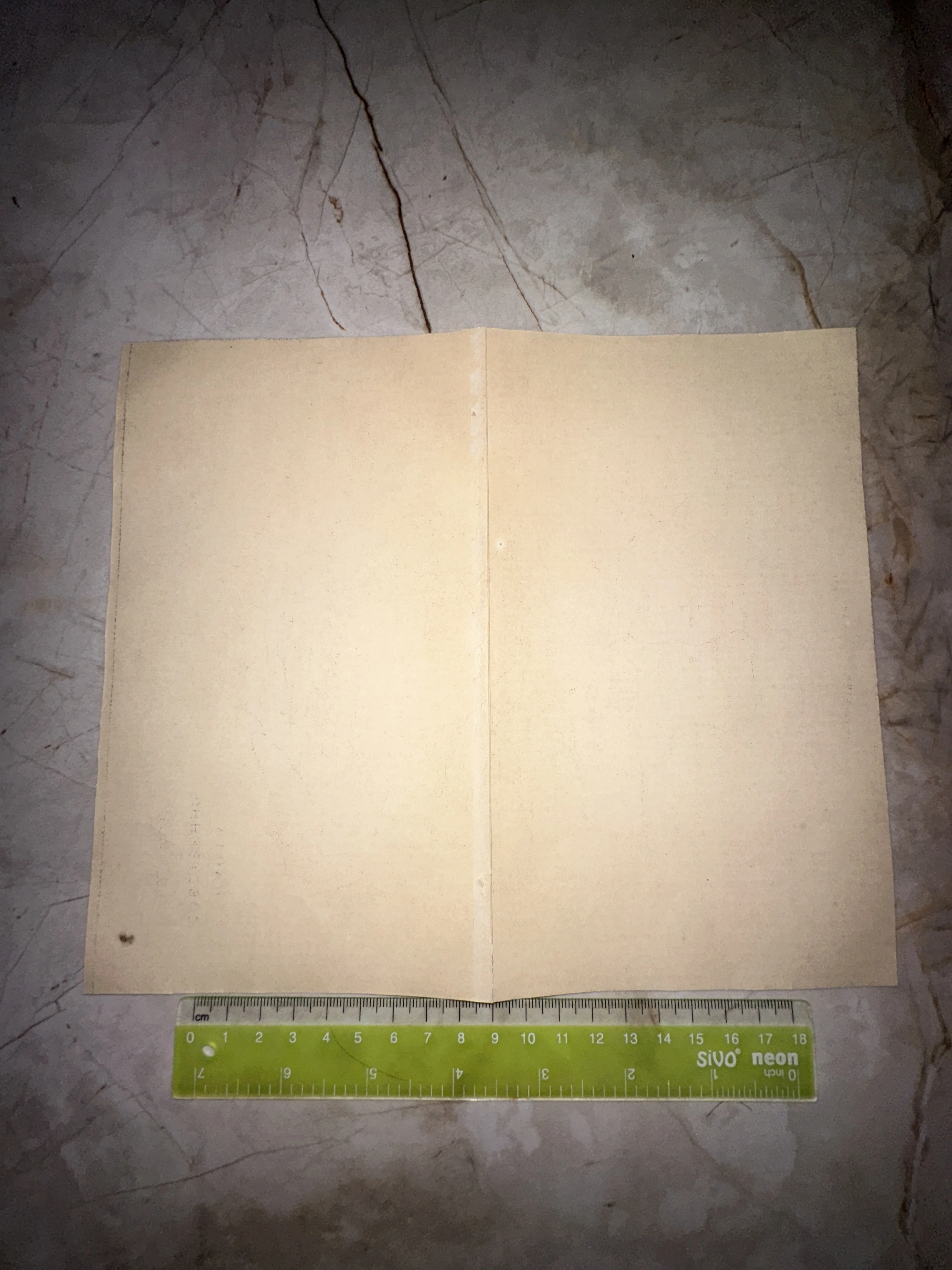 Этот аутентичный лист сохранил благородную желтизну и уникальную текстуру, характерную для бумаги прошлых эпох. Отсутствие записей и чистая поверхность делают его идеальным экземпляром для реставрационных работ или каллиграфических экспериментов в винтажном стиле. Состояние бумаги подчеркивает ее историческую ценность и естественную сохранность.