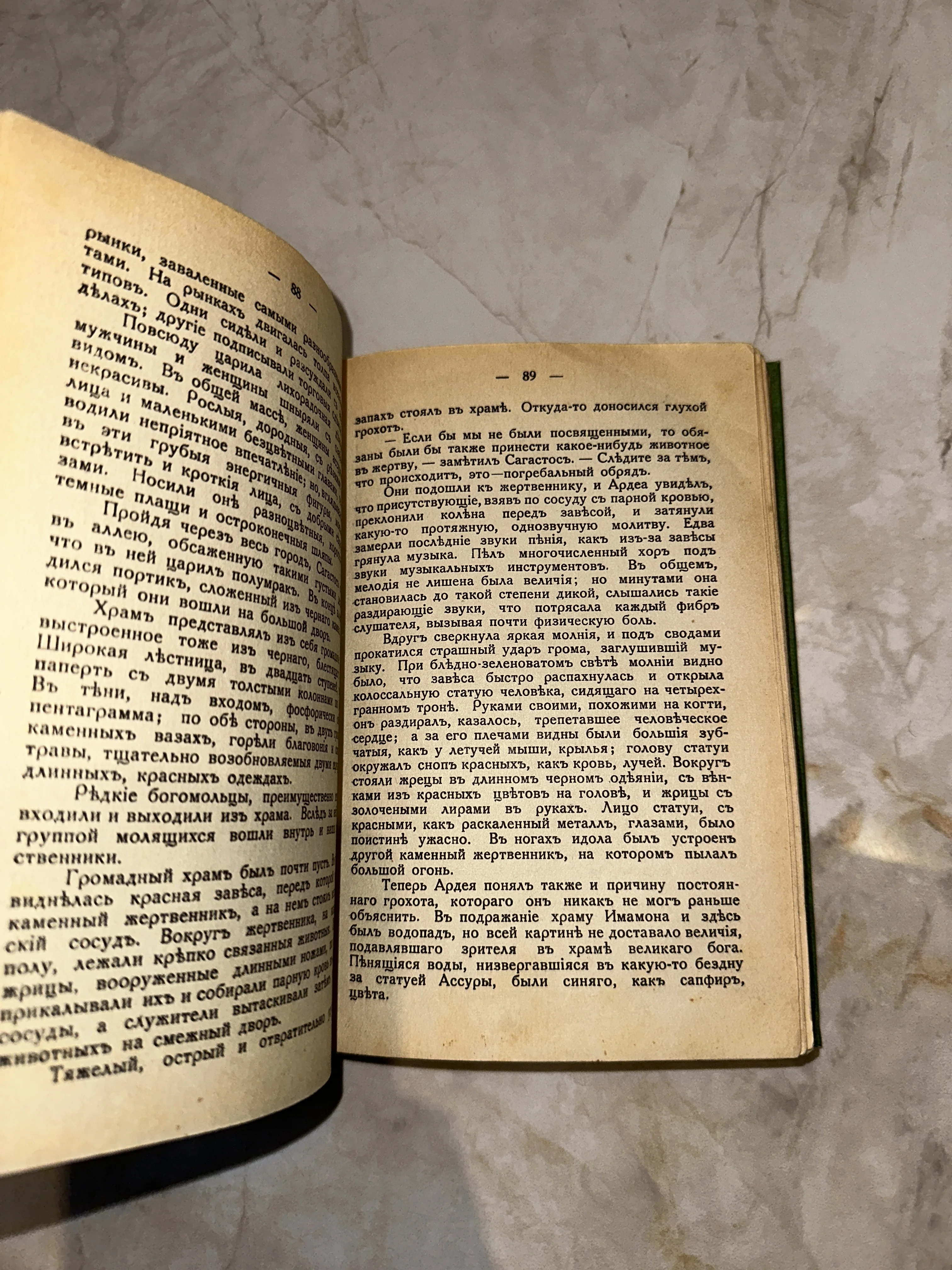 Перед вами подлинный фрагмент истории — страницы антикварного издания с характерным для начала XX века шрифтом и выразительной версткой. Пожелтевшая от времени бумага и захватывающее повествование о древних храмах переносят читателя в ушедшую эпоху. Идеальный экземпляр для ценителей старинной словесности и коллекционеров редких книг.