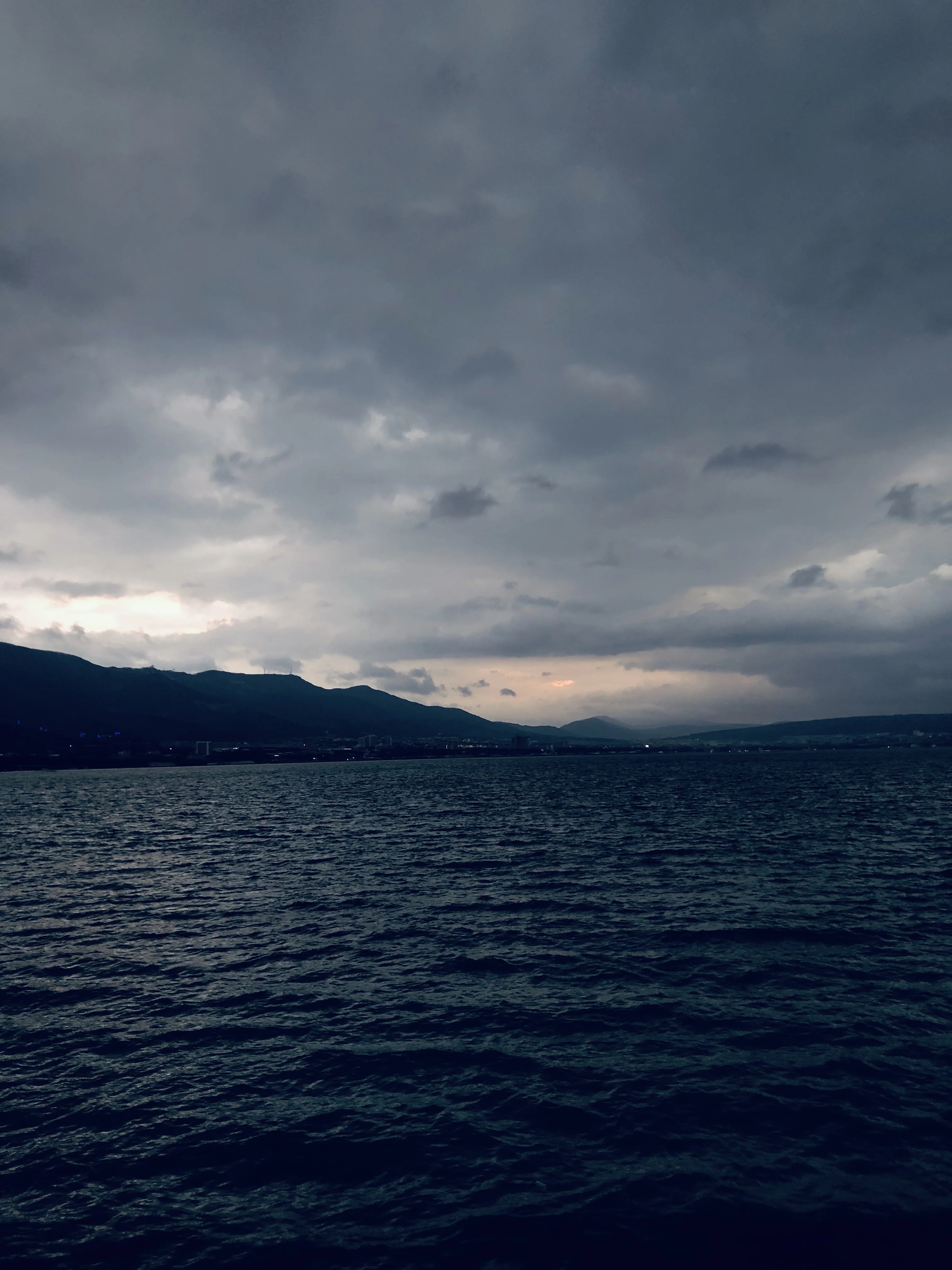 Драматичный пейзаж, запечатлевший момент тревожного затишья перед бурей. Глубокие холодные оттенки воды и фактурное свинцовое небо передают суровую эстетику и первозданную мощь северной природы.