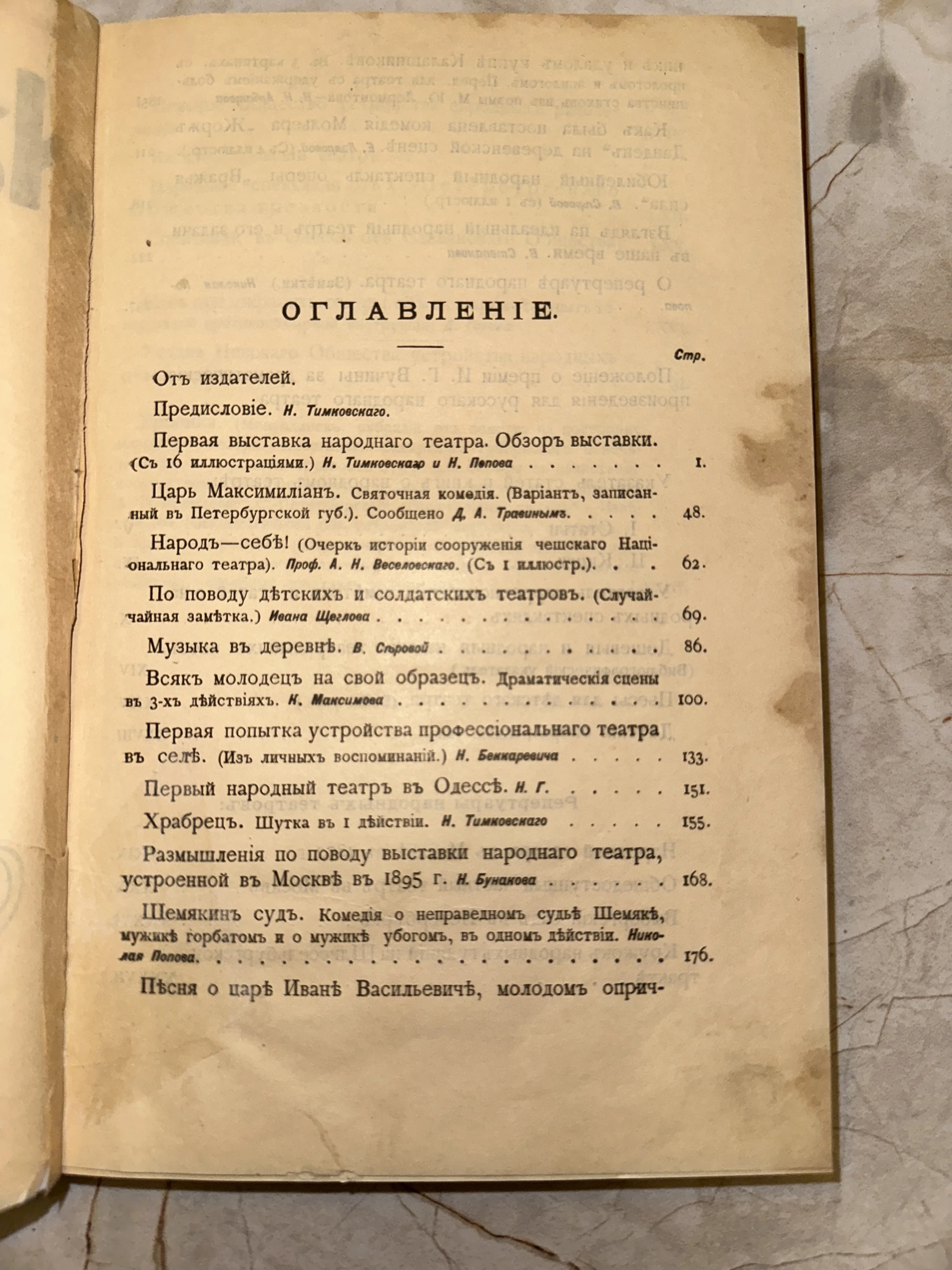 Оглавление антикварного издания о народном театре