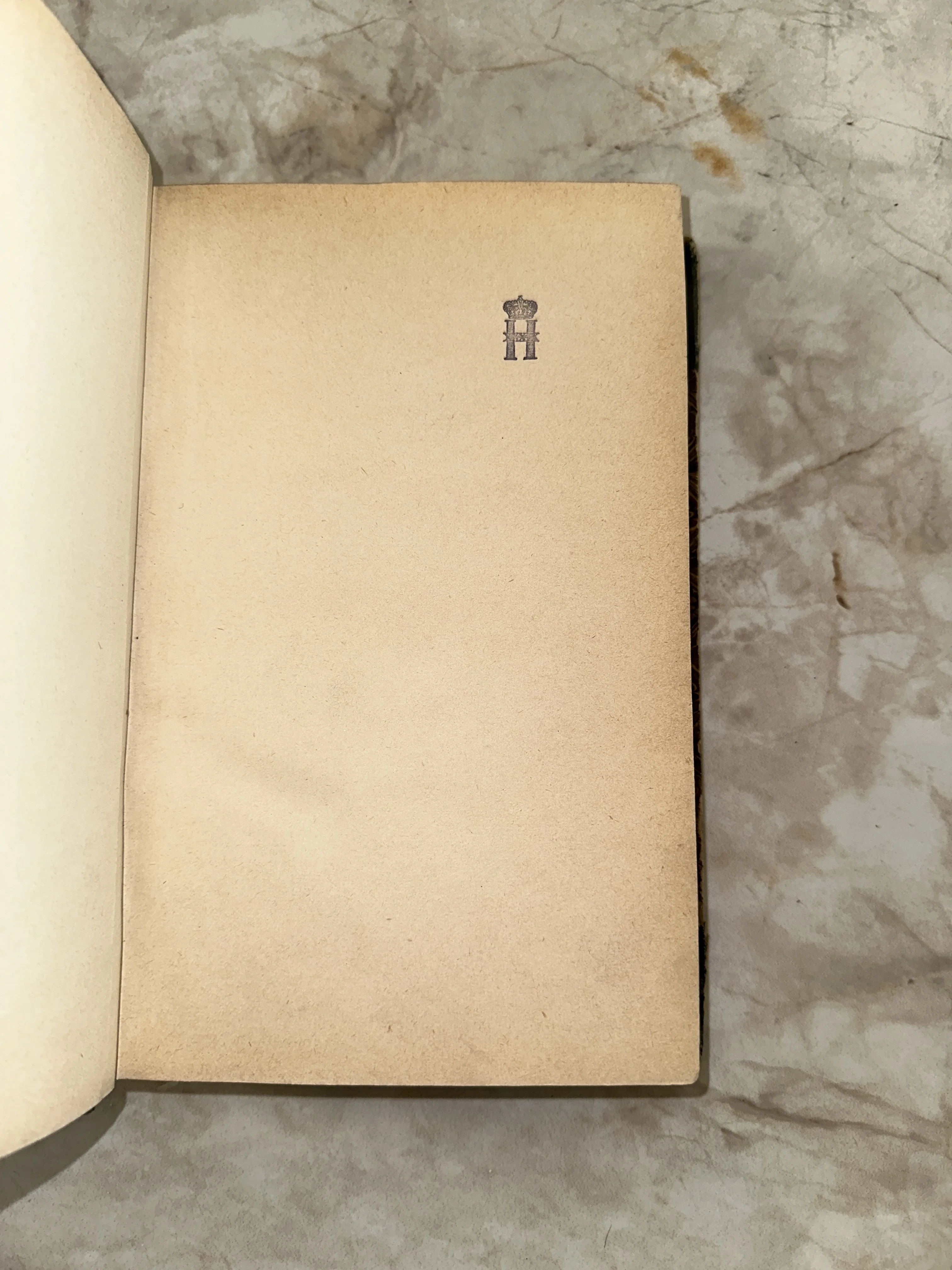 Элегантный форзац антикварного издания, украшенный лаконичным владельческим штампом с изображением короны. Благородная патина времени на плотной бумаге верже подчеркивает аристократическое происхождение и коллекционную ценность этого экземпляра.