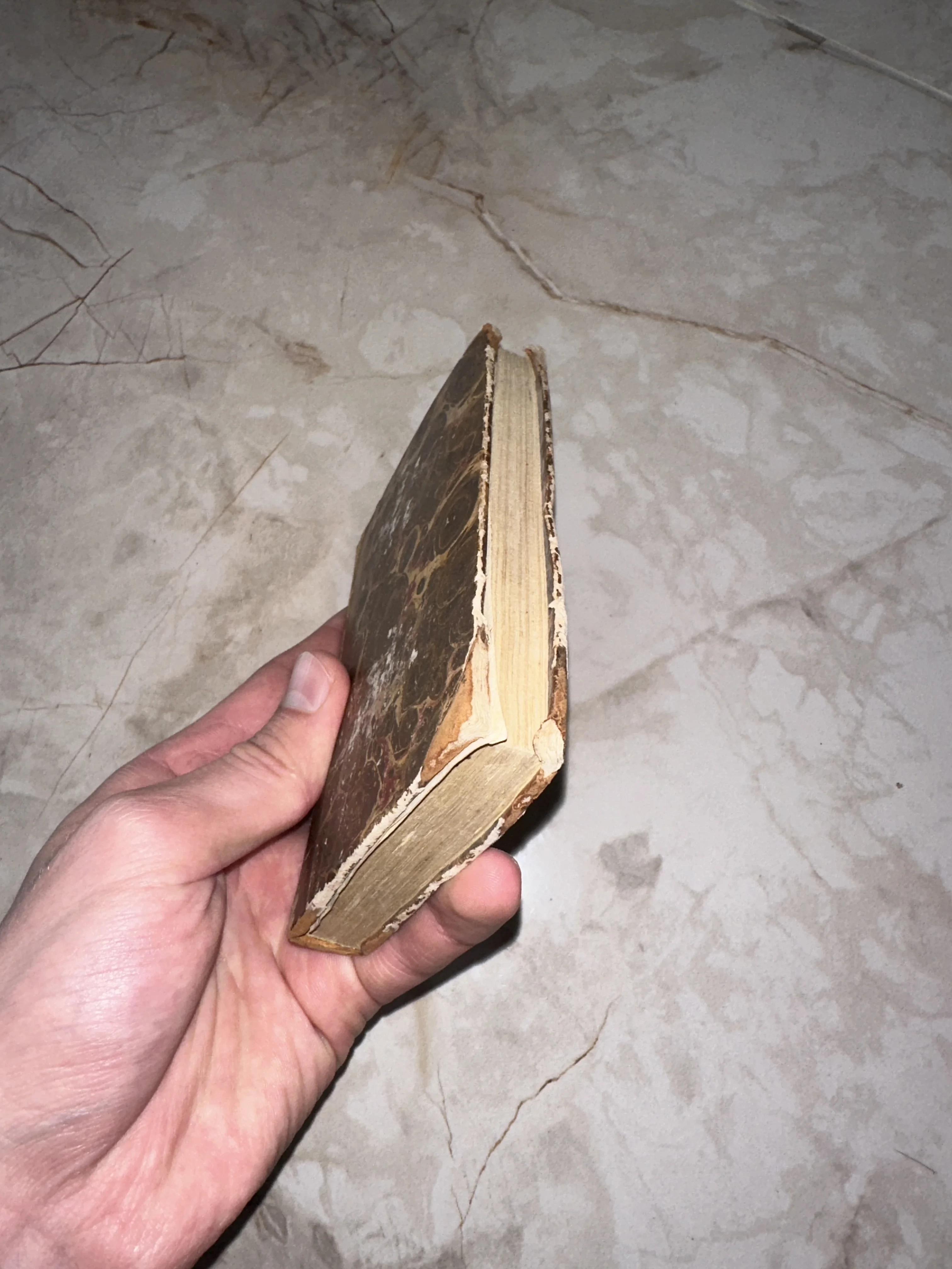 Компактное антикварное издание в характерном переплете с мраморной бумагой, отражающее эстетику книжного дела прошлых веков. Пожелтевшие от времени страницы и естественные следы бытования придают этому экземпляру особую коллекционную притягательность и аутентичность.