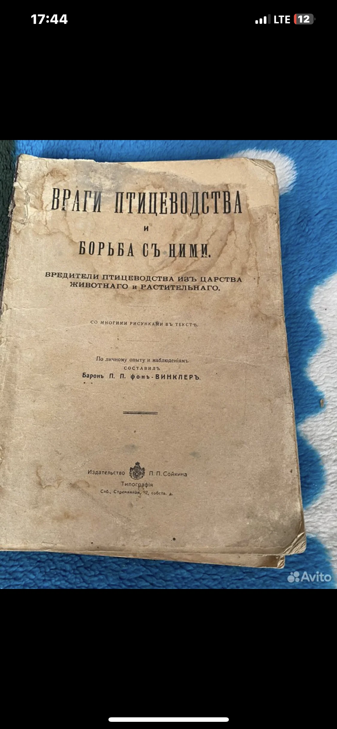 Антикварная книга «Враги птицеводства и борьба с ними», барон П. П. фон Винклер
