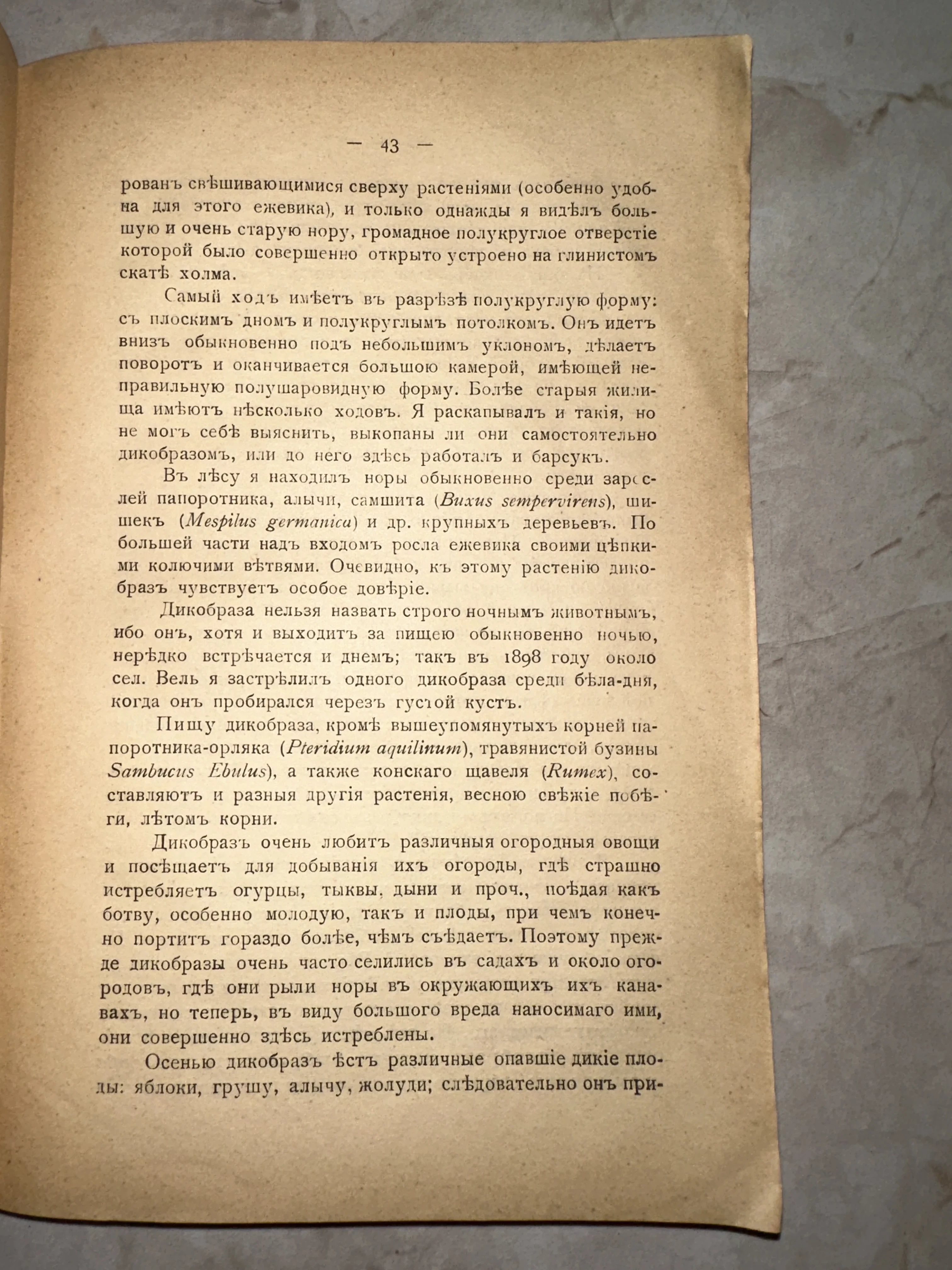 Раритетный фрагмент естественнонаучного труда, напечатанный в конце XIX — начале XX века. На пожелтевшей бумаге сохранился увлекательный рассказ о повадках дикобраза, изложенный классическим дореволюционным слогом. Идеальный предмет для коллекционеров старинной литературы и любителей истории науки.