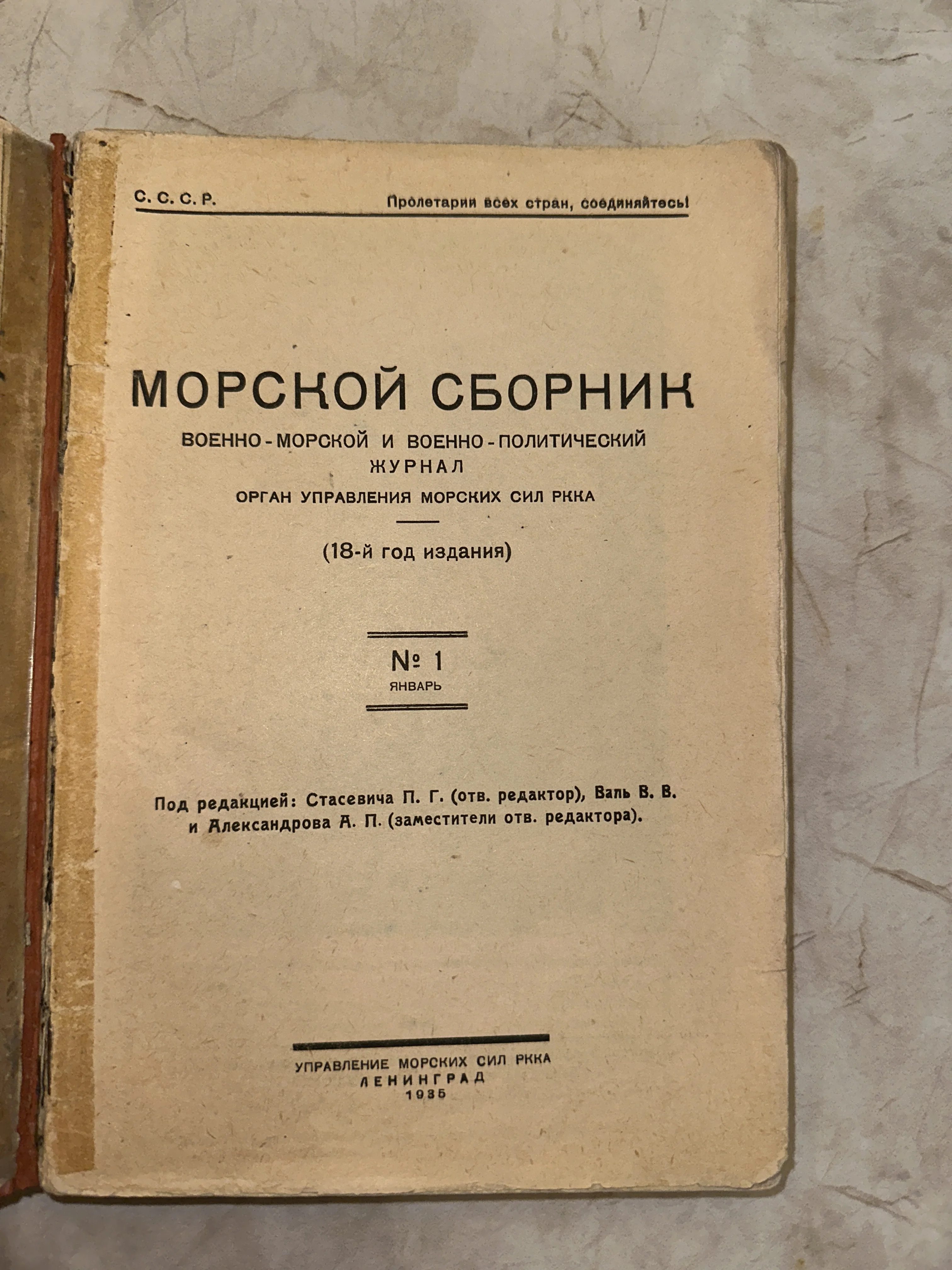 Титульный лист советского военно-морского журнала «Морской сборник» №1 за январь 1935 года, орган Управления Морских Сил РККА.