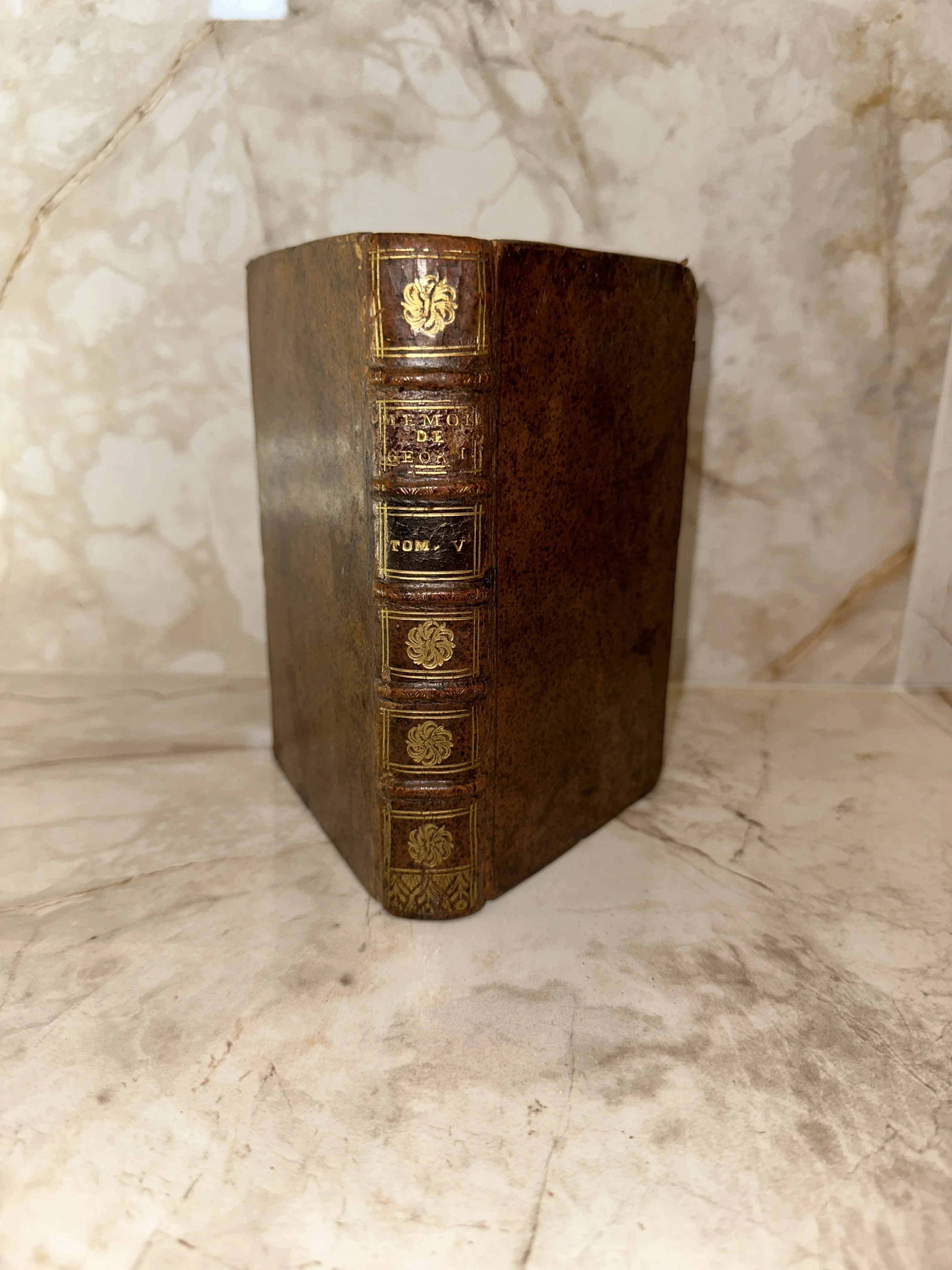 Перед вами величественный пятый том в классическом кожаном переплете, сохранивший очарование ушедших веков. Корешок украшен изысканным золотым тиснением с флористическими мотивами и выразительными бинтами, что подчеркивает высокий статус издания. Благородная патина и текстура старинной кожи делают этот экземпляр идеальным подарком для коллекционера или украшением кабинетной библиотеки.