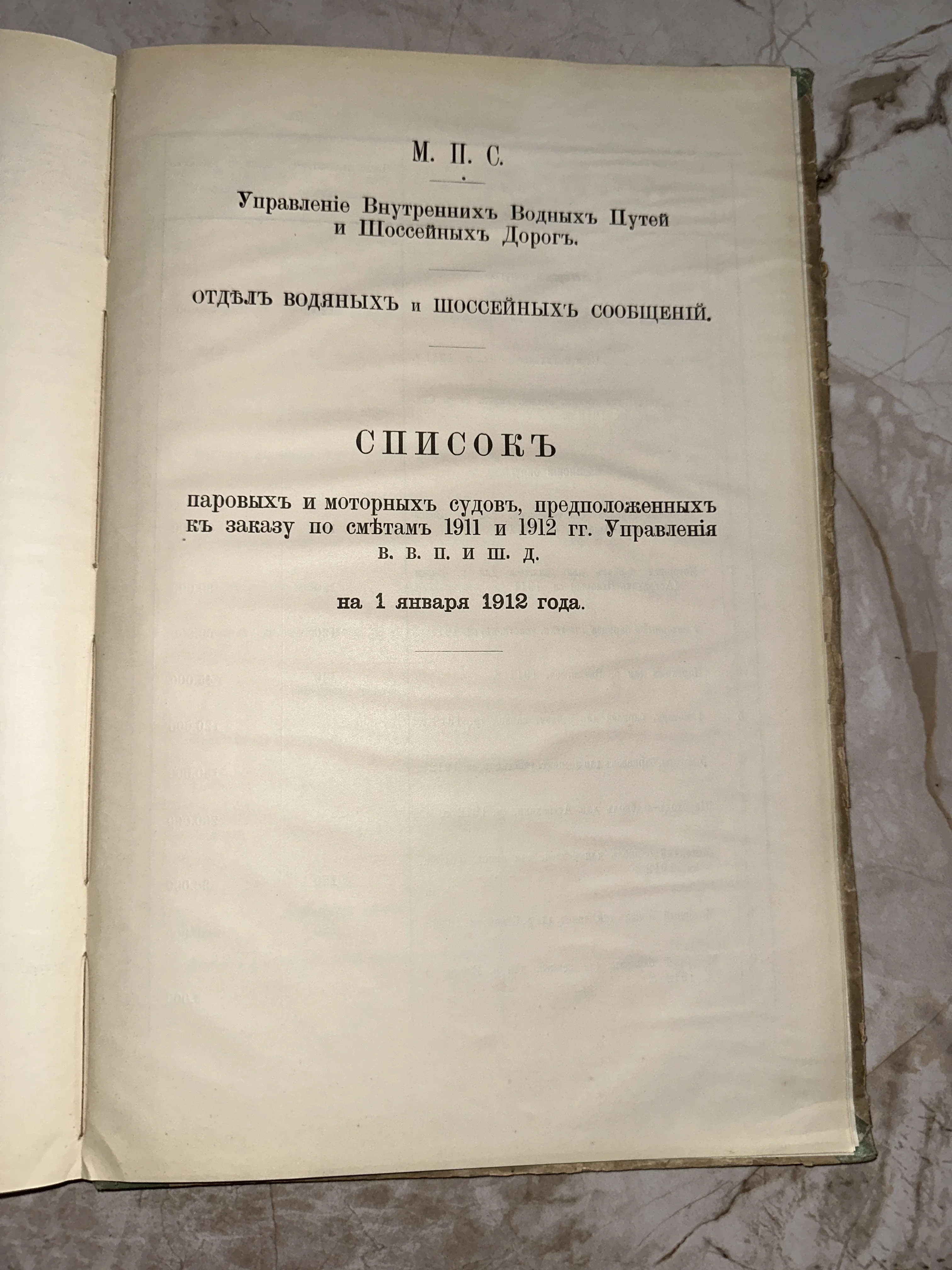 Редкий официальный документ дореволюционной России, посвященный развитию водного транспорта и шоссейных дорог. Страница сохранила аутентичную типографику начала XX века и благородную патину времени на плотной бумаге. Издание представляет высокую историческую ценность для исследователей отечественного флота и инженерного дела.