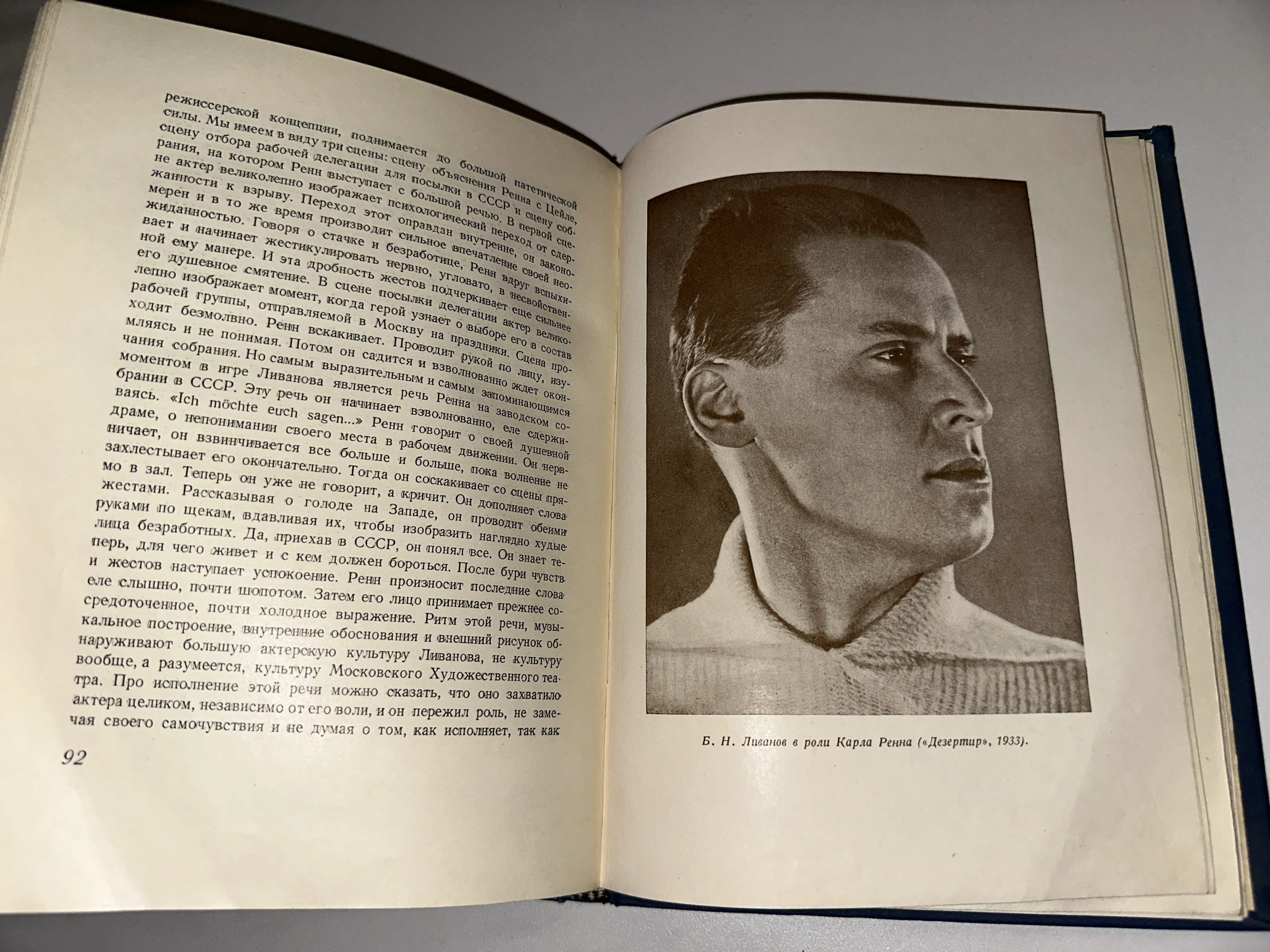 Этот редкий книжный разворот посвящен выдающейся игре Бориса Ливанова в фильме «Дезертир» 1933 года. Глубокий психологический портрет актера в сочетании с детальным анализом сценической концепции позволяет прикоснуться к истории советского кинематографа. Сохранность бумаги и четкость типографской печати делают данный экземпляр ценным материалом для коллекционеров и историков искусства.