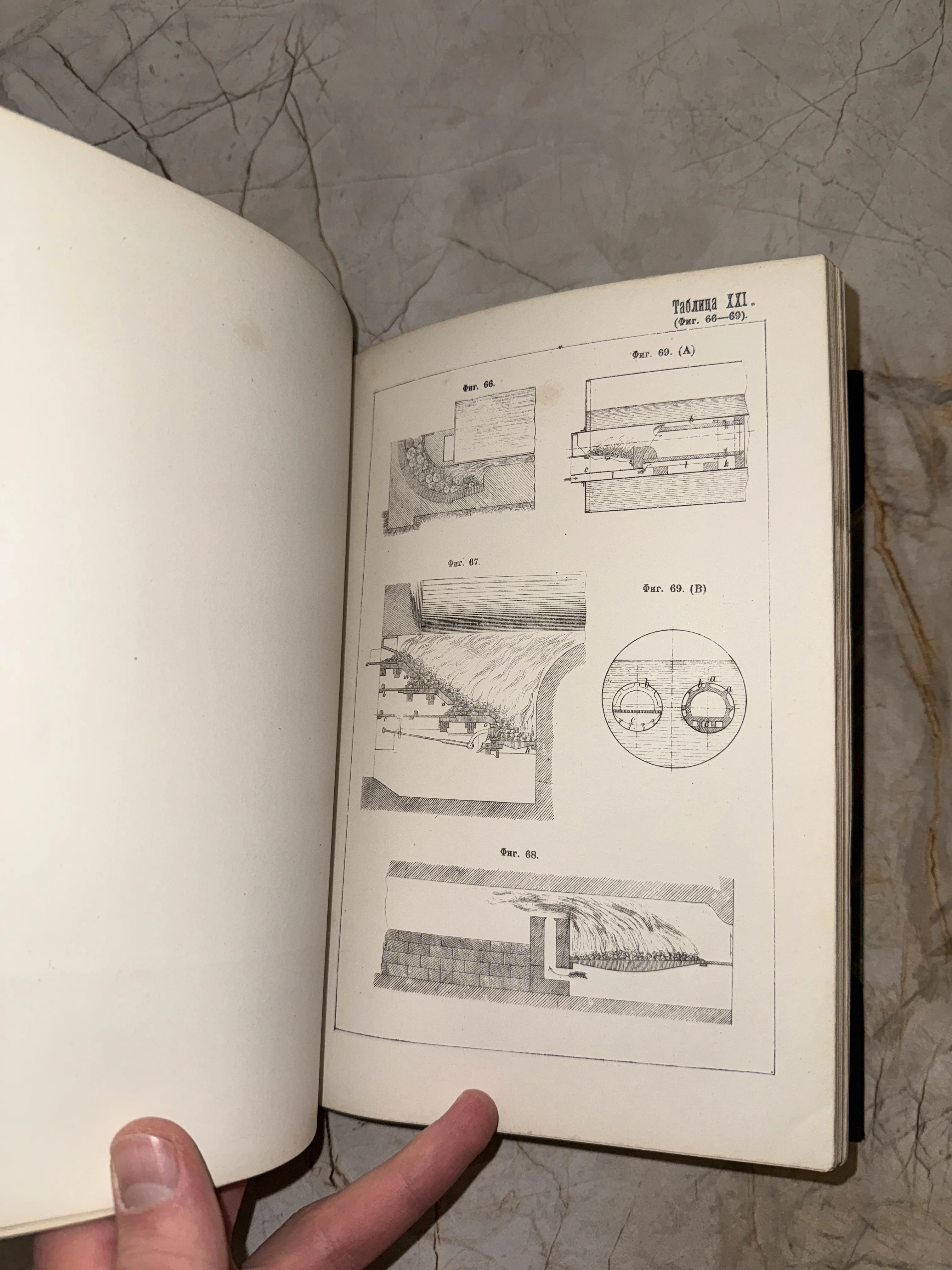Уникальная страница из антикварного технического издания с детальными чертежами инженерных сооружений. Гравюры выполнены с исключительной точностью, отражая высокий уровень промышленной графики прошлого столетия. Отличное состояние бумаги и четкость линий делают этот экземпляр ценным приобретением для ценителей истории науки и техники.