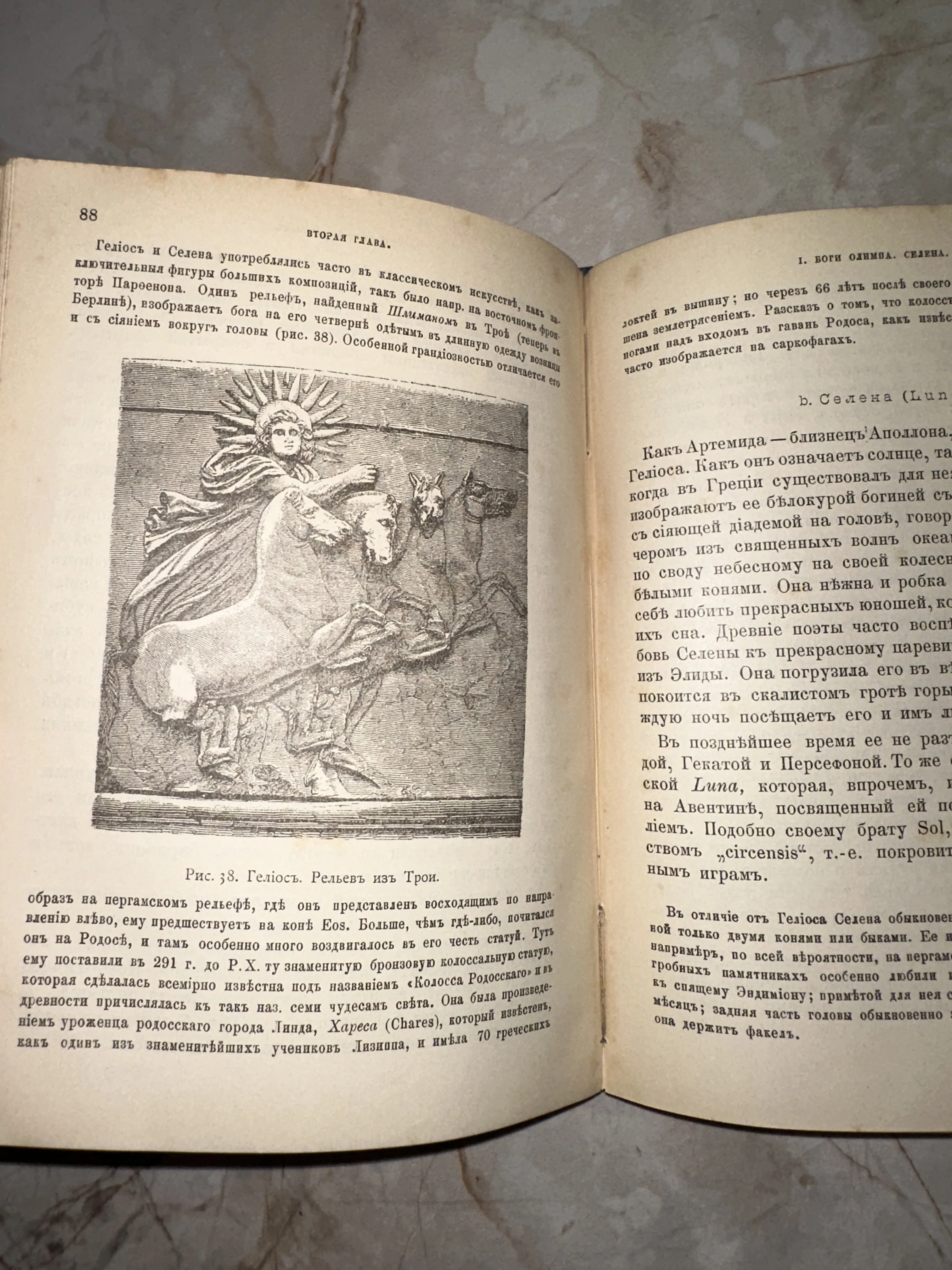 Старинное издание по античной мифологии: Гелиос и Селена
