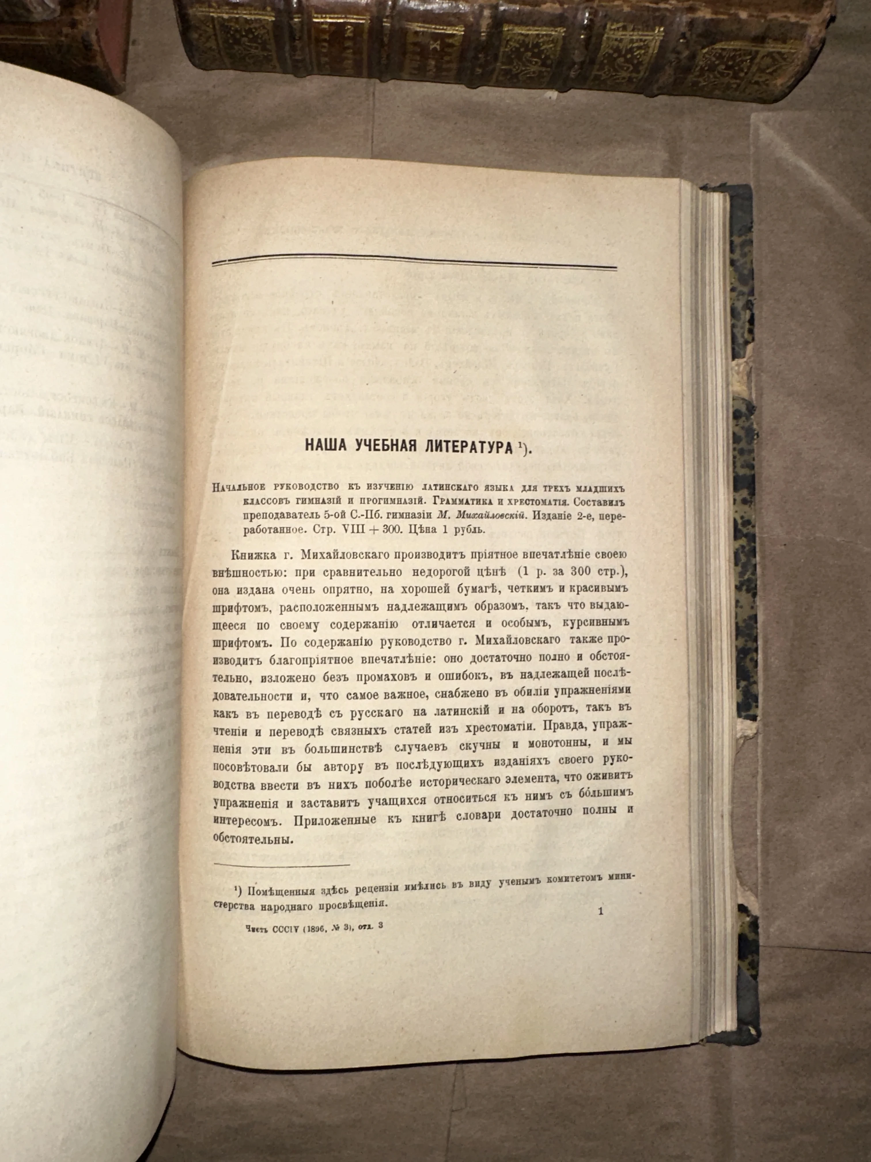 Этот редкий книжный разворот 1896 года предлагает уникальный взгляд на систему образования Российской империи конца XIX века. Благородная патина времени на плотных страницах и четкий типографский шрифт в дореволюционной орфографии создают неповторимую атмосферу подлинной старины.