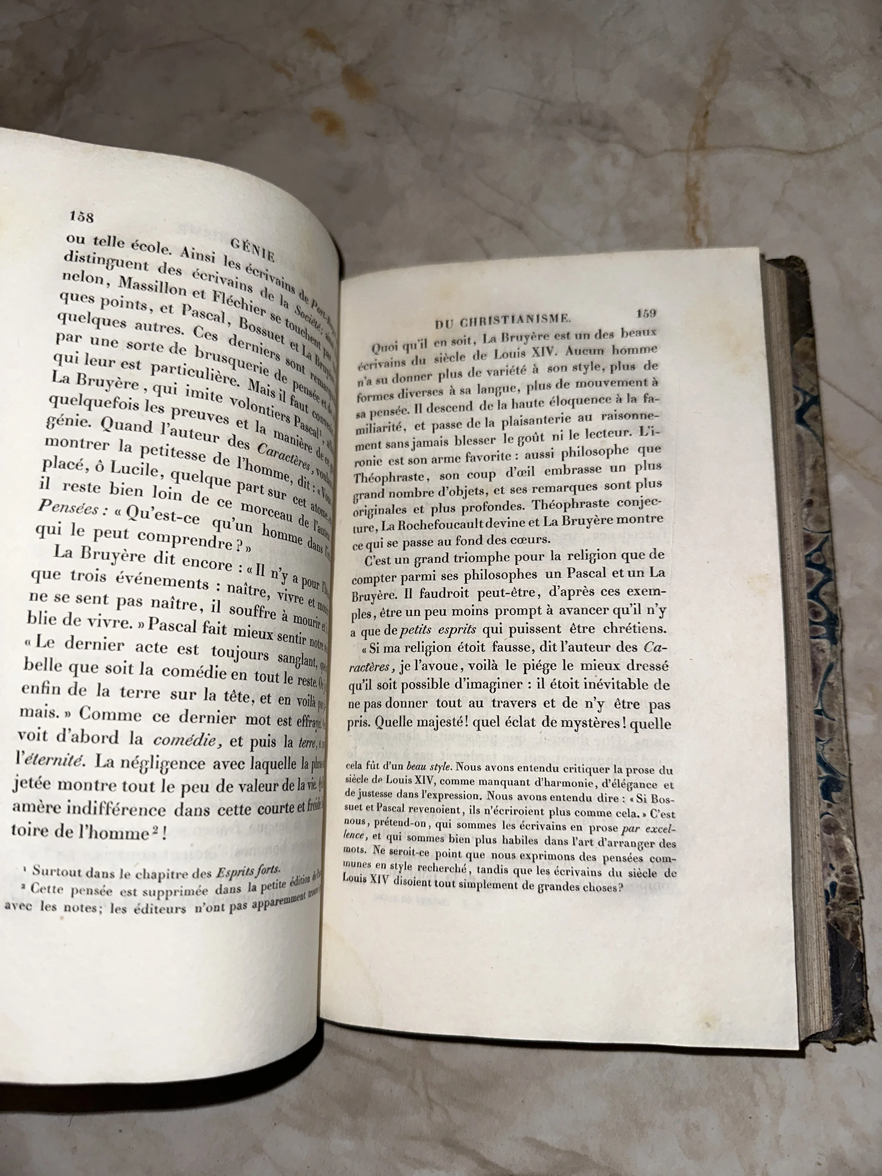 Разворот старинной книги на французском языке с заголовком Du Christianisme, страницы 158-159.