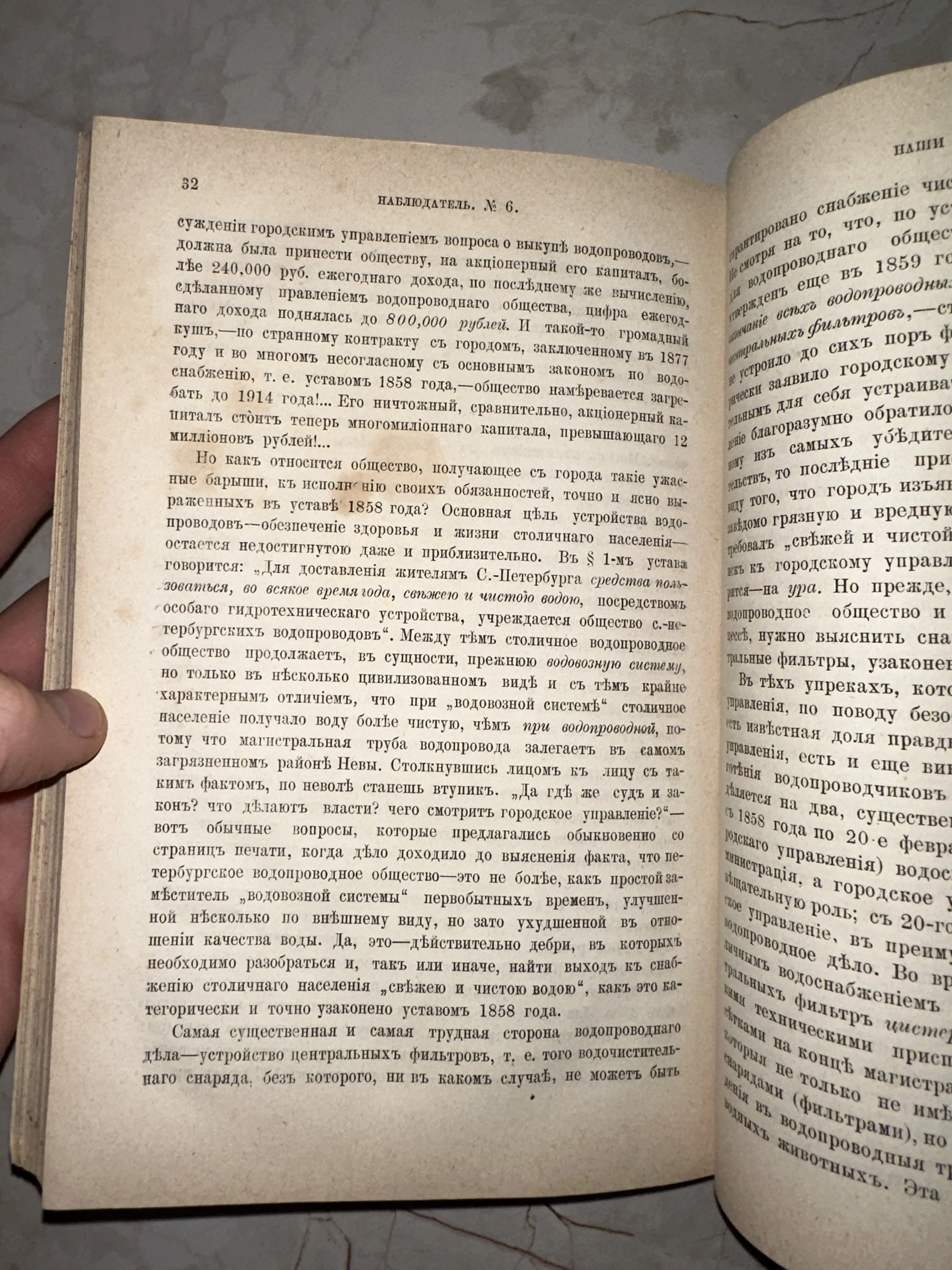 Аутентичный фрагмент из влиятельного журнала «Наблюдатель», сохранивший живой голос дореволюционной публицистики. Пожелтевшие страницы с четкой типографской печатью переносят читателя в атмосферу дискуссий о развитии Санкт-Петербурга конца XIX века. Прекрасный образец антикварной периодики, представляющий как историческую, так и коллекционную ценность.