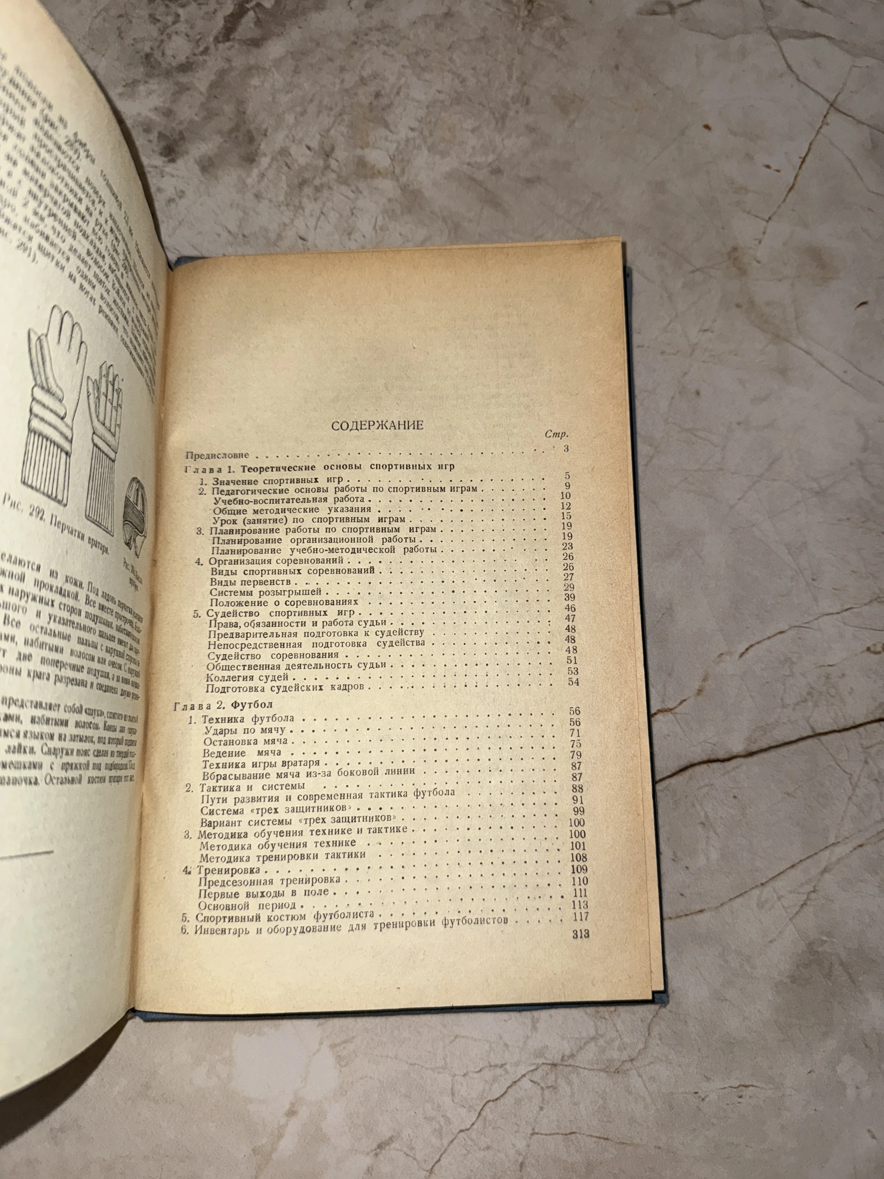 Уникальное методическое издание советской эпохи, подробно описывающее тактику футбола и правила судейства. Пожелтевшие от времени страницы и детальные схемы спортивной экипировки передают подлинную атмосферу классического спорта середины XX века.