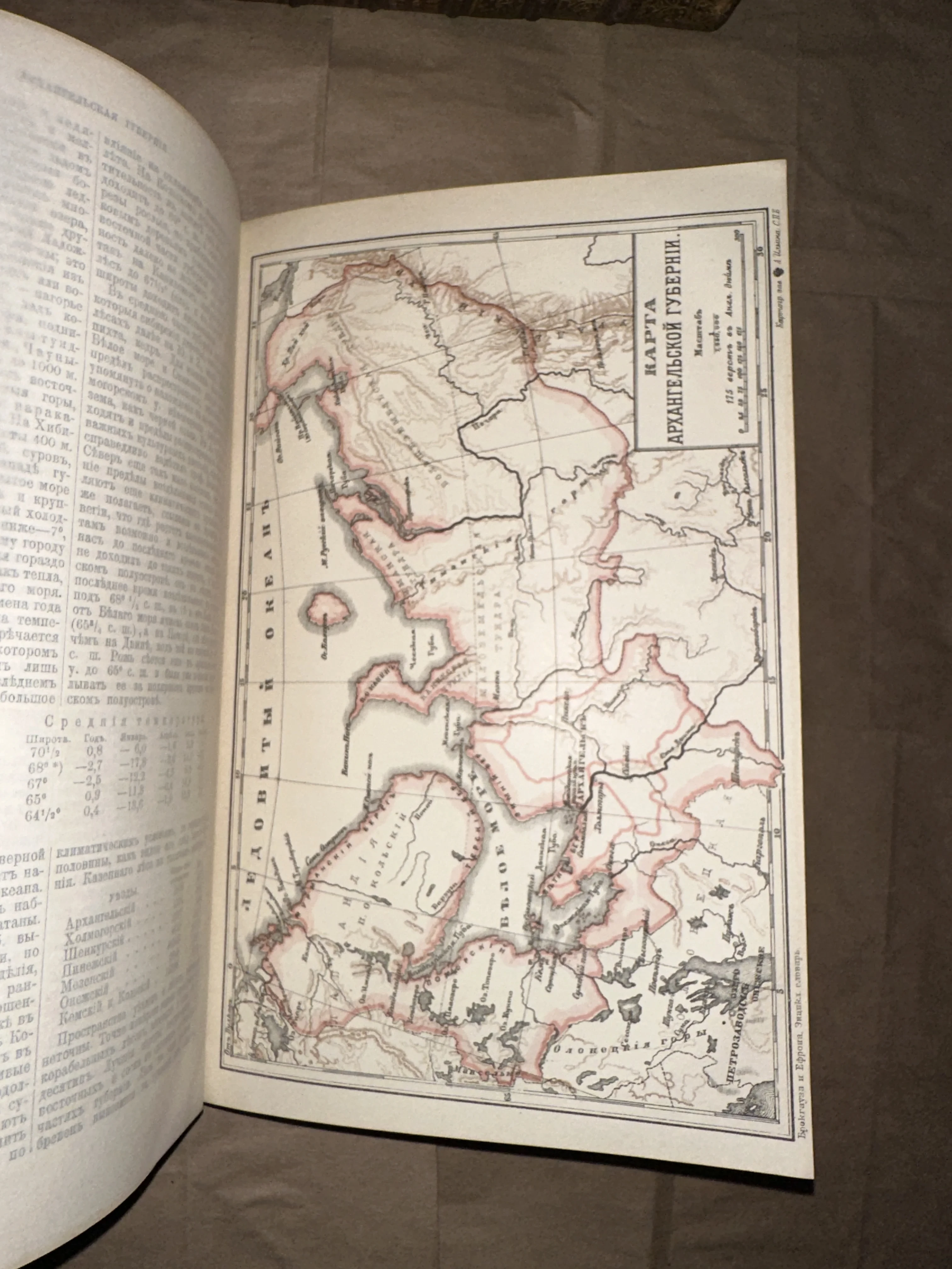 Карта Архангельской губернии из словаря Брокгауза и Ефрона