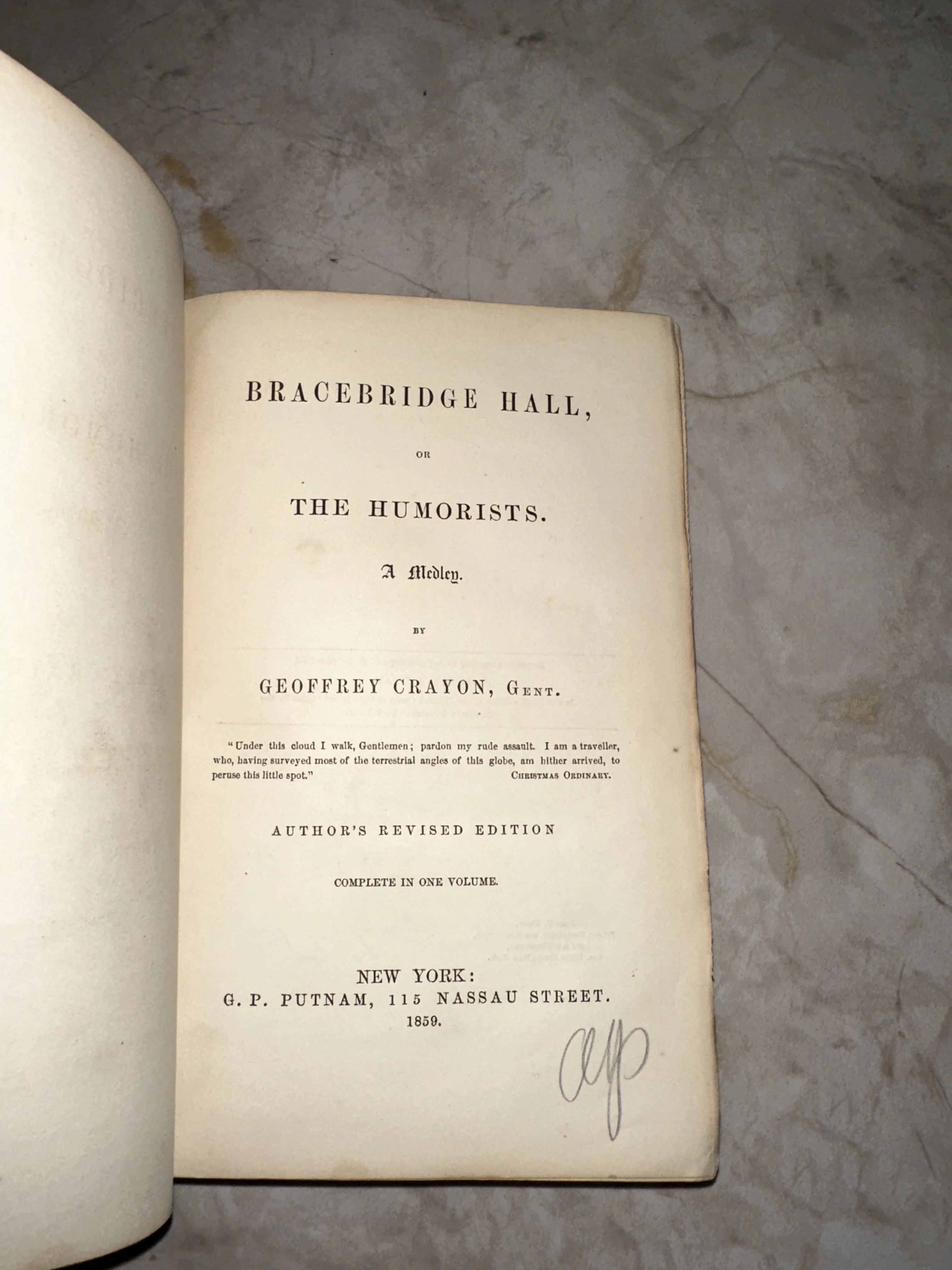 Антикварное издание Вашингтона Ирвинга «Брейсбридж-холл», 1859 год
